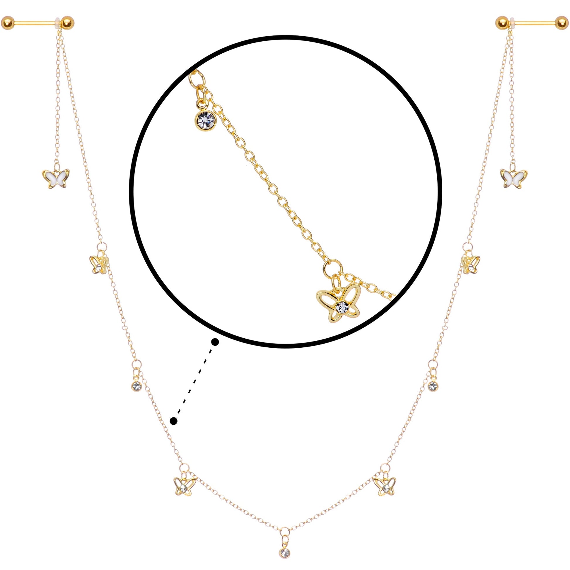 14G 9/16 Clear Gem Gold Tone Butterfly Dangle Nipple Chain