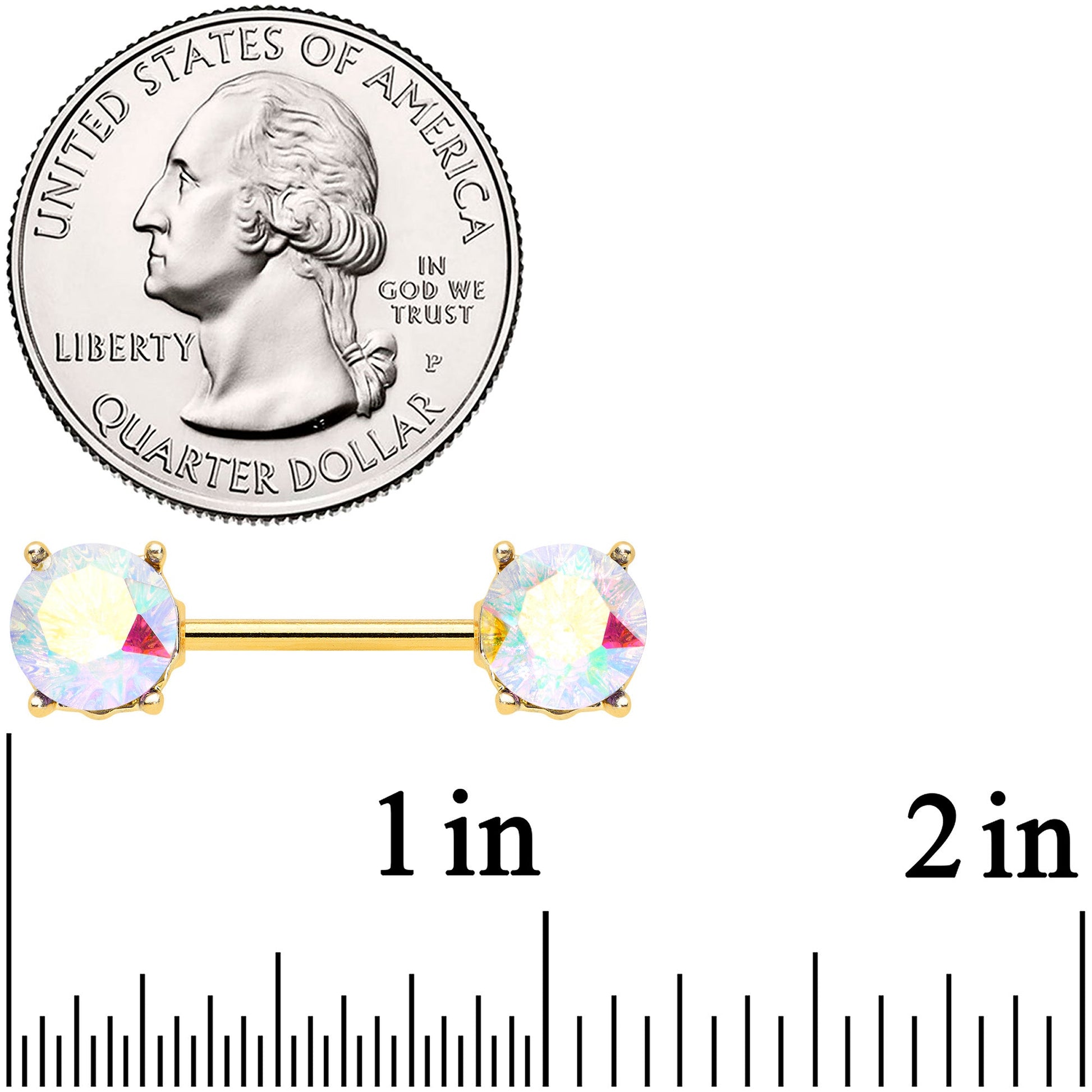 14G 9/16 Clear Gem Gold Tone Simply Elegant Nipple Ring Set