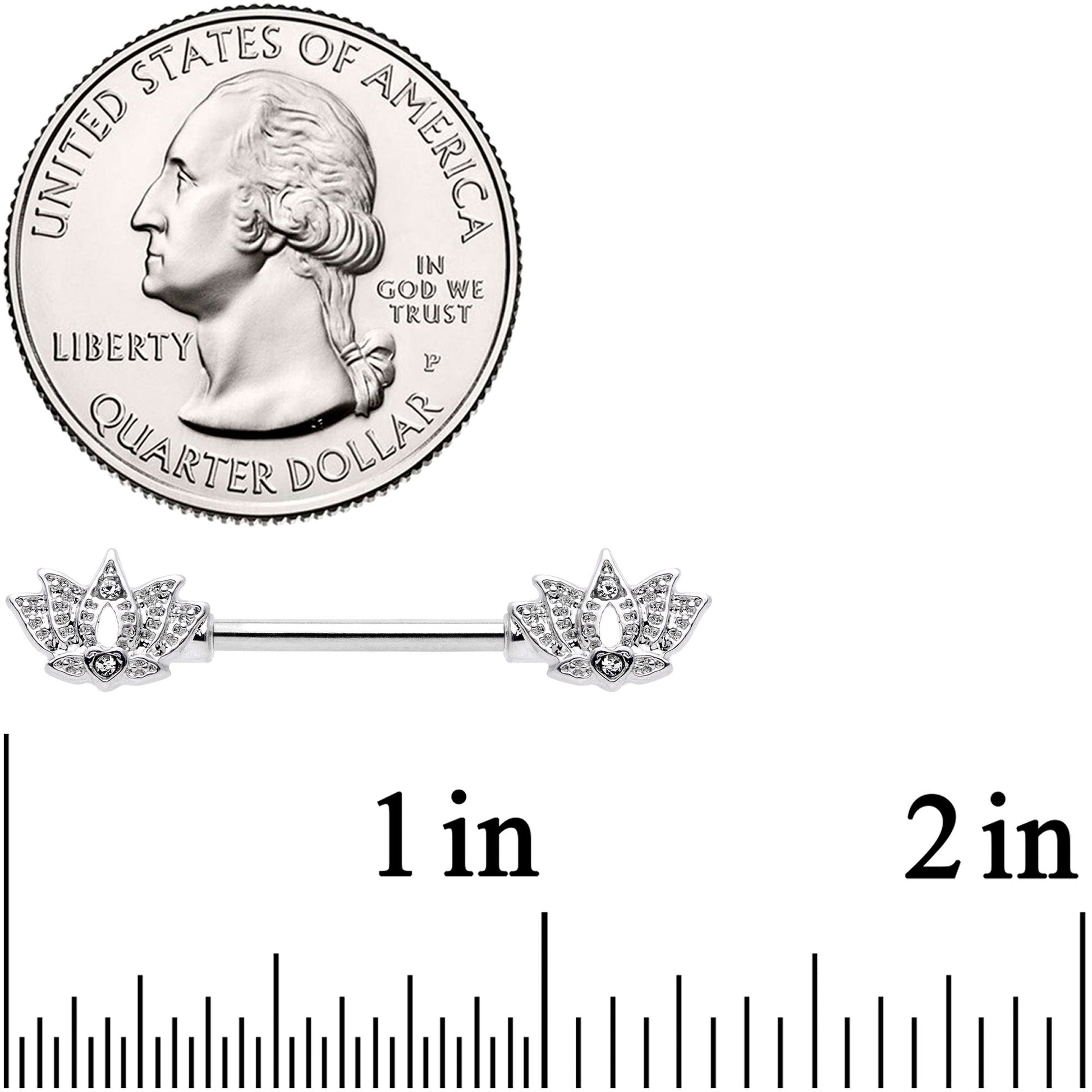 14G 9/16 Clear Gem Lotus Flower Barbell Nipple Ring Set