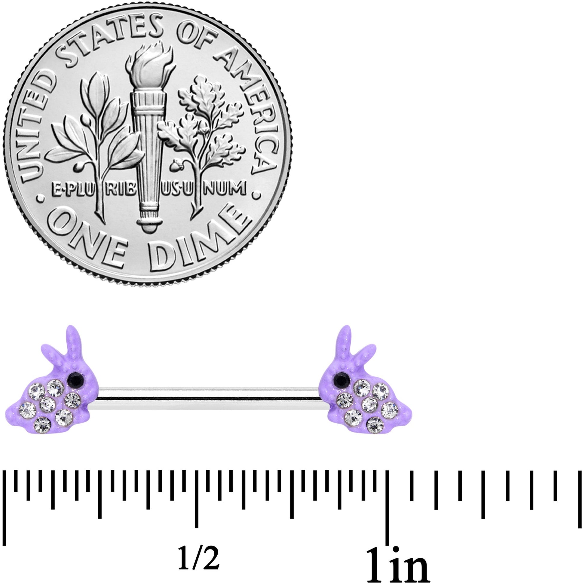 14G 9/16 Clear Gem Purple Easter Bunny Barbell Nipple Ring Set