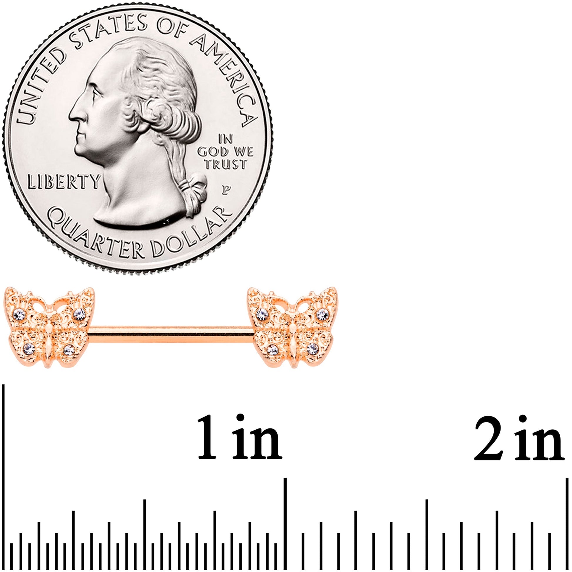 14G 9/16 Clear Gem Rose Gold Tone Butterfly Nipple Ring Set