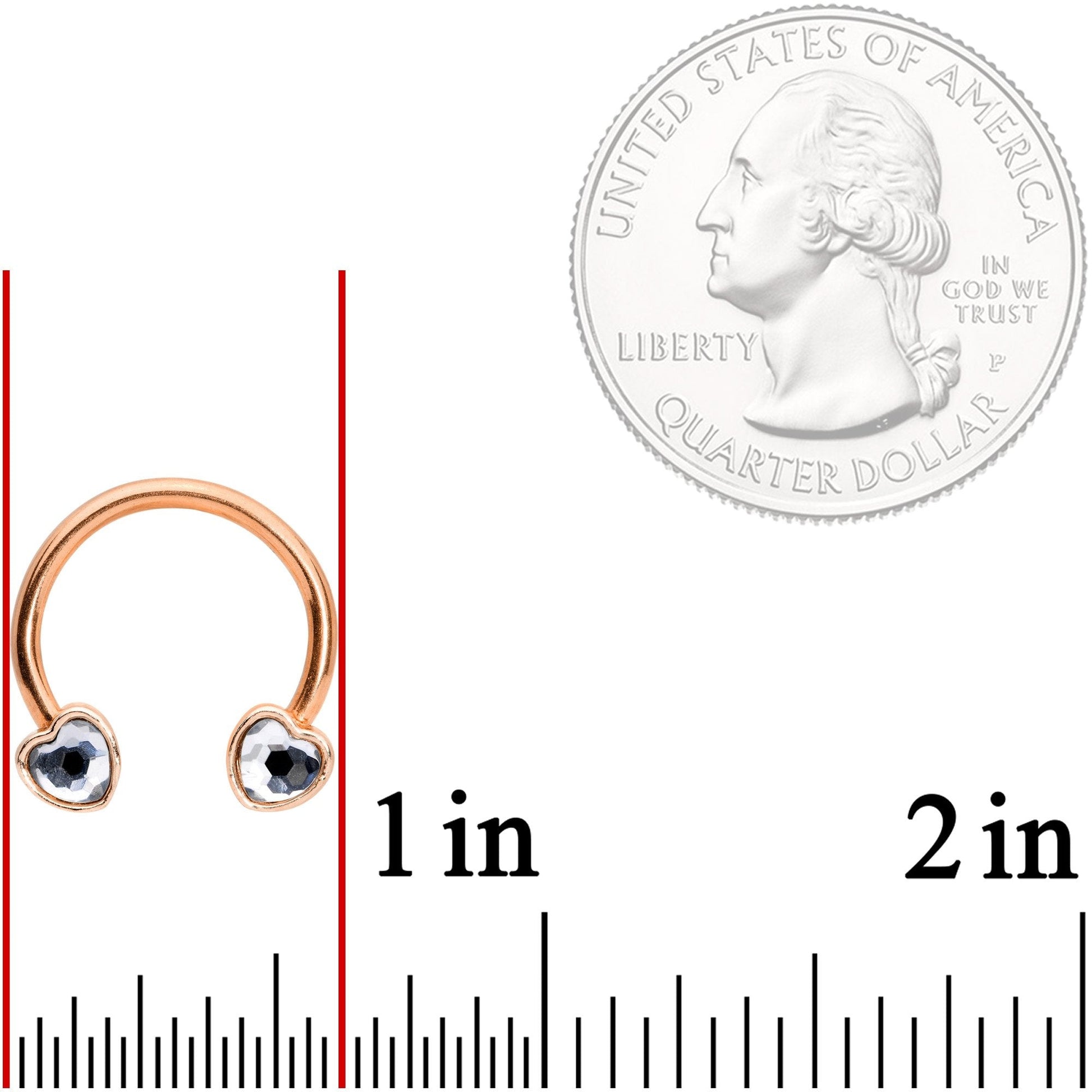 14G 9/16 Clear Gem Rose Gold Tone Heart Horseshoe Nipple Ring Set