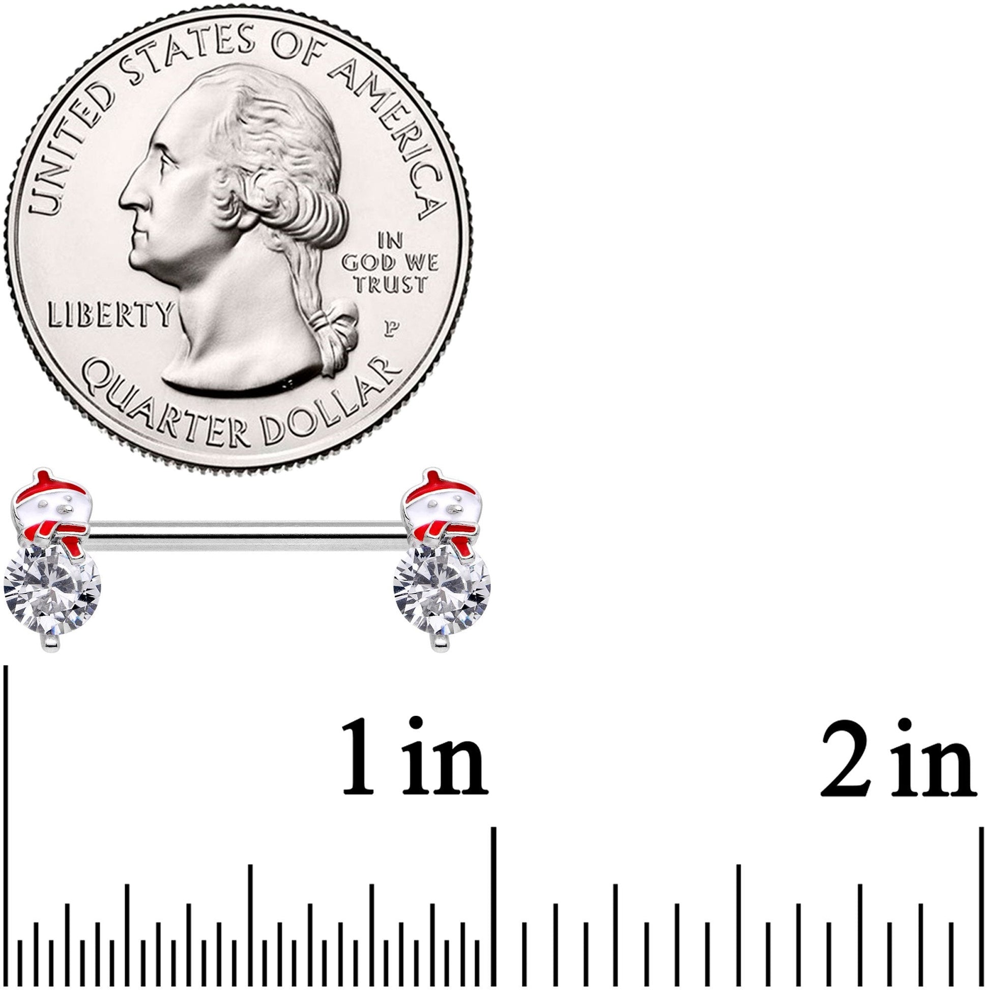 14G 9/16 Clear Gem Winter Snowman Barbell Nipple Ring Set