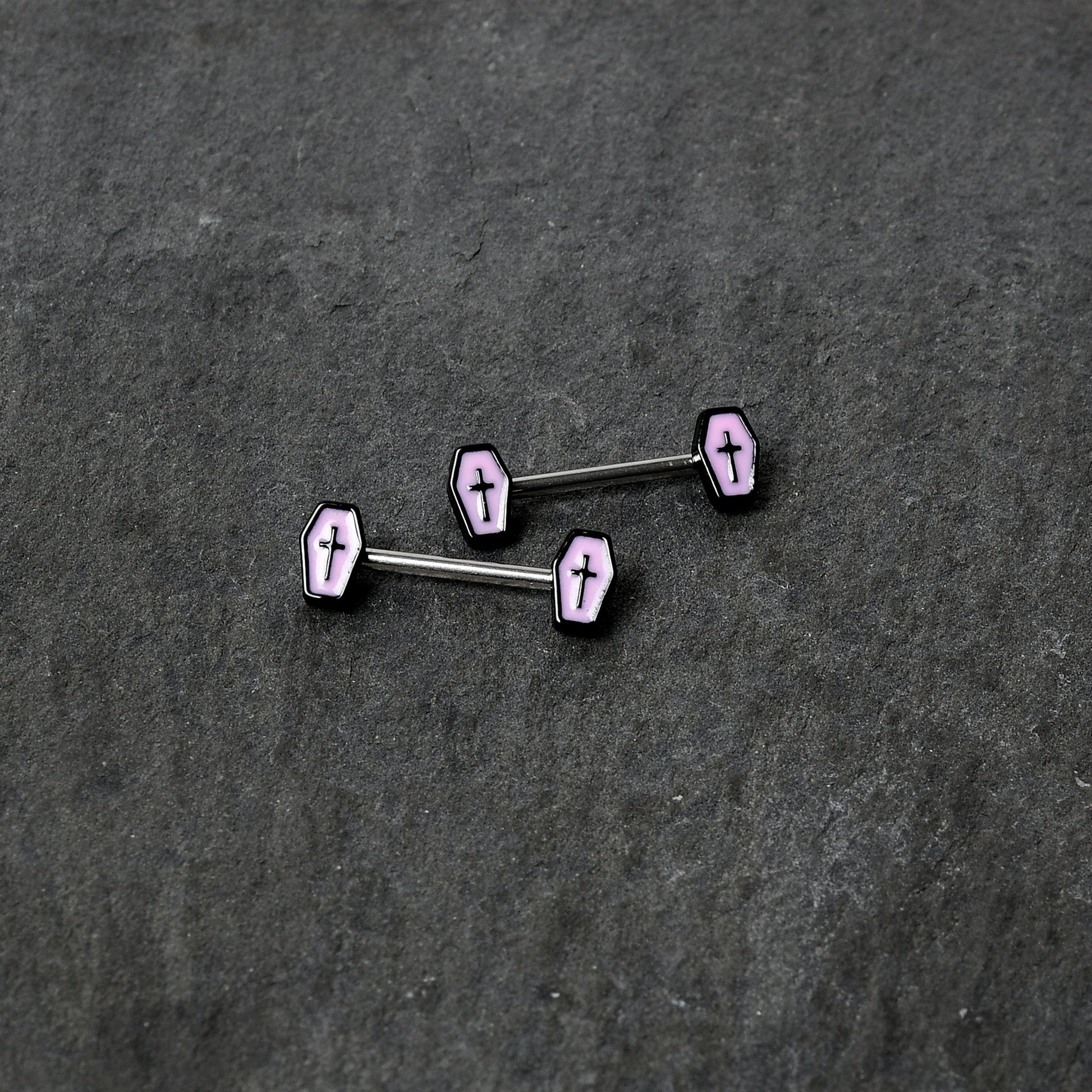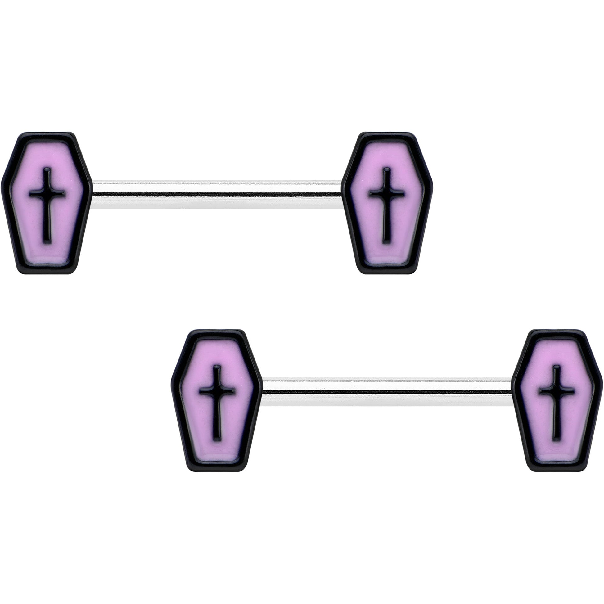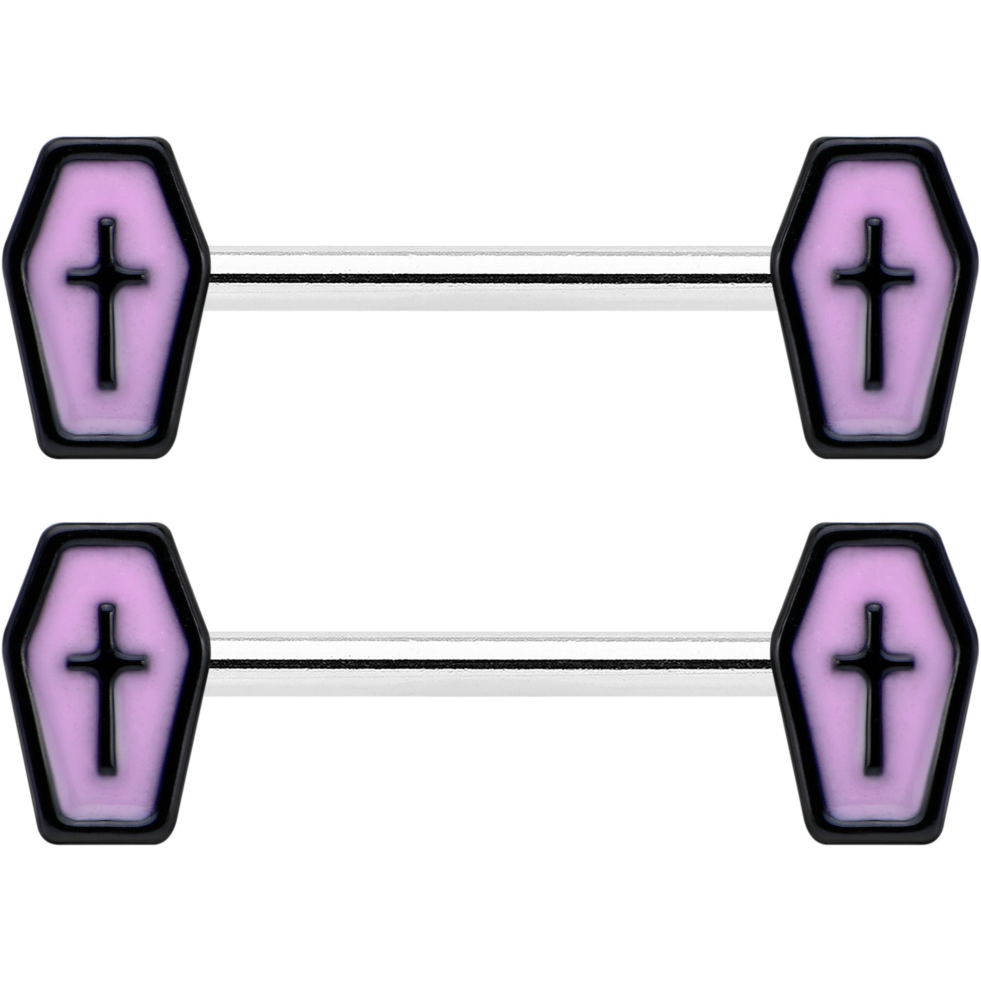 14G 9/16 Creepy Coffin Lt Purple Glow in the Dark Nipple Ring Set