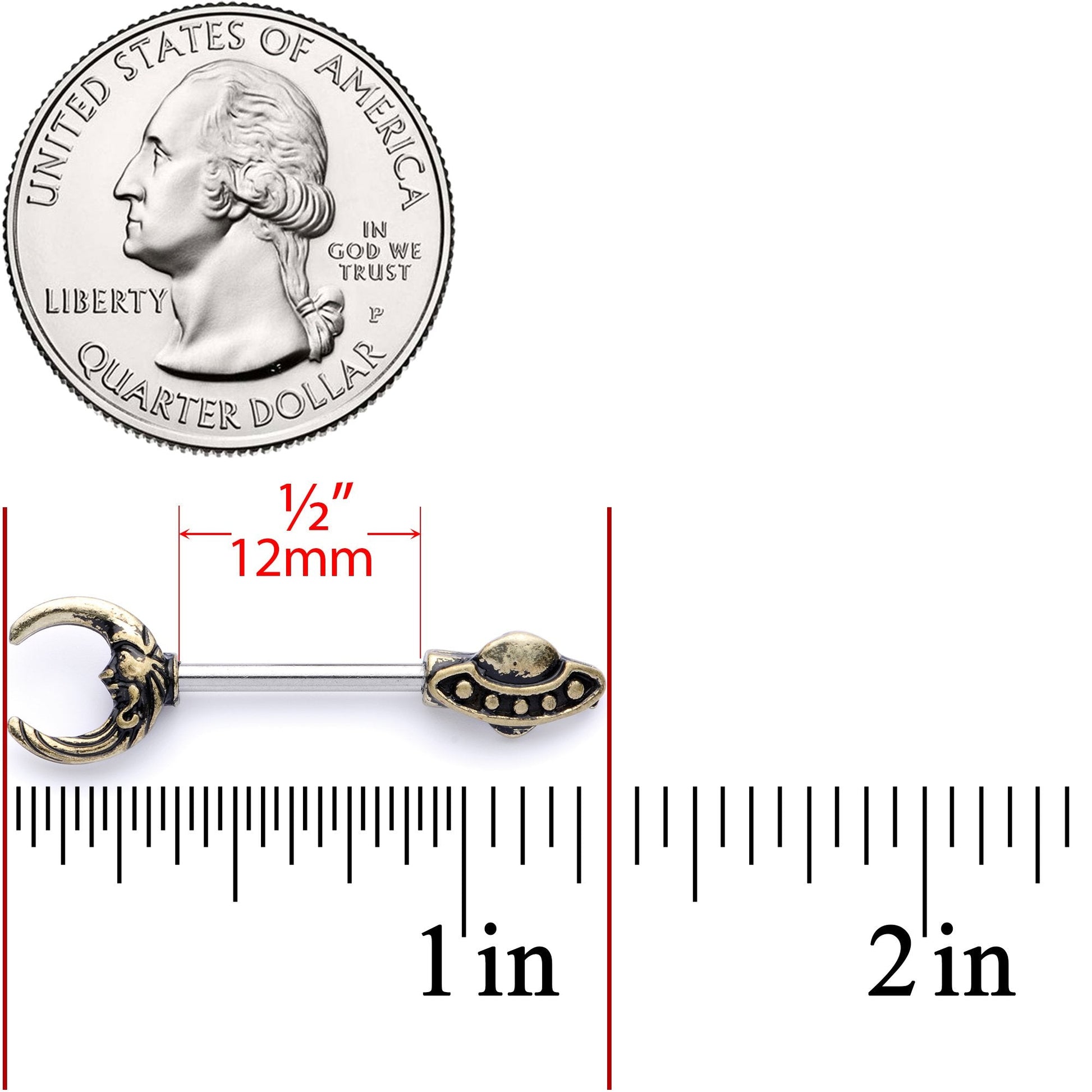 14 Gauge 9/16" Crescent Moon Space Ship UFO Barbell Nipple Ring Set
