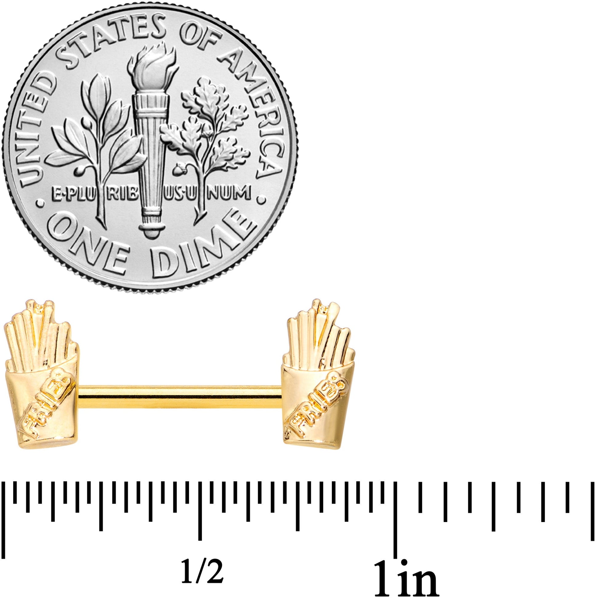 14 Gauge 9/16 Gold Tone Fast Food Fries Barbell Nipple Ring Set