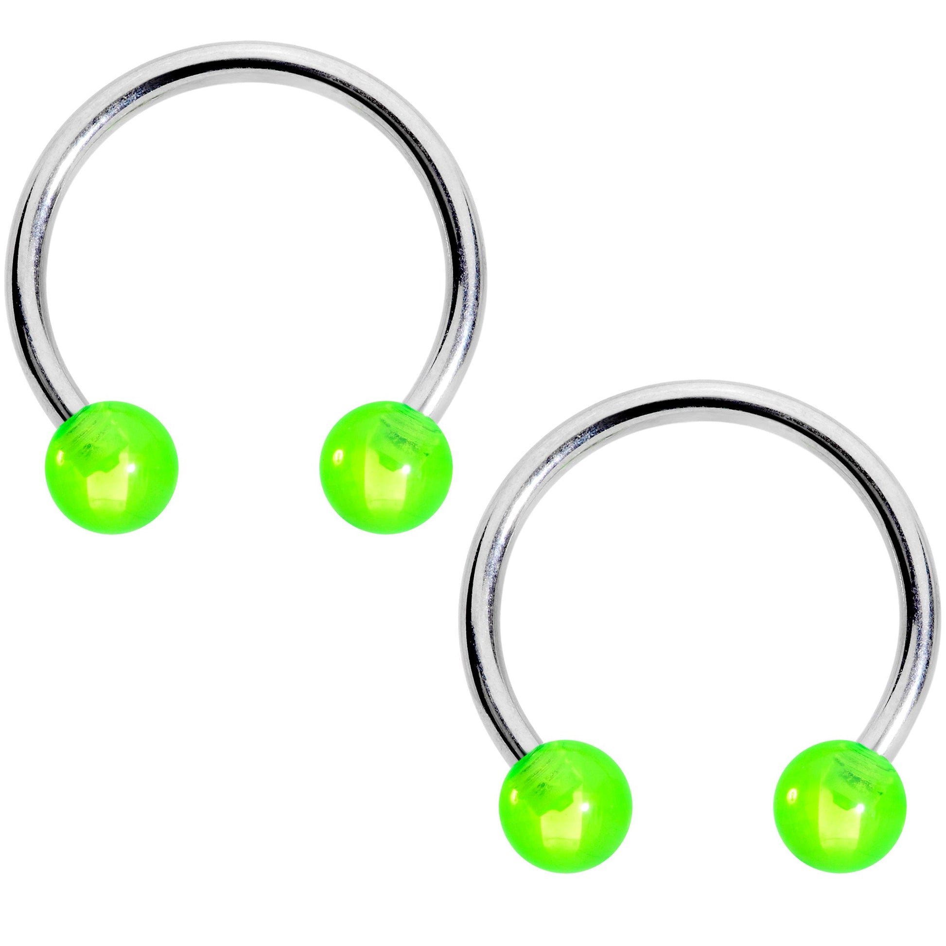 14 Gauge 9/16 Green Frog UV Horseshoe Barbell Nipple Ring Set of 4