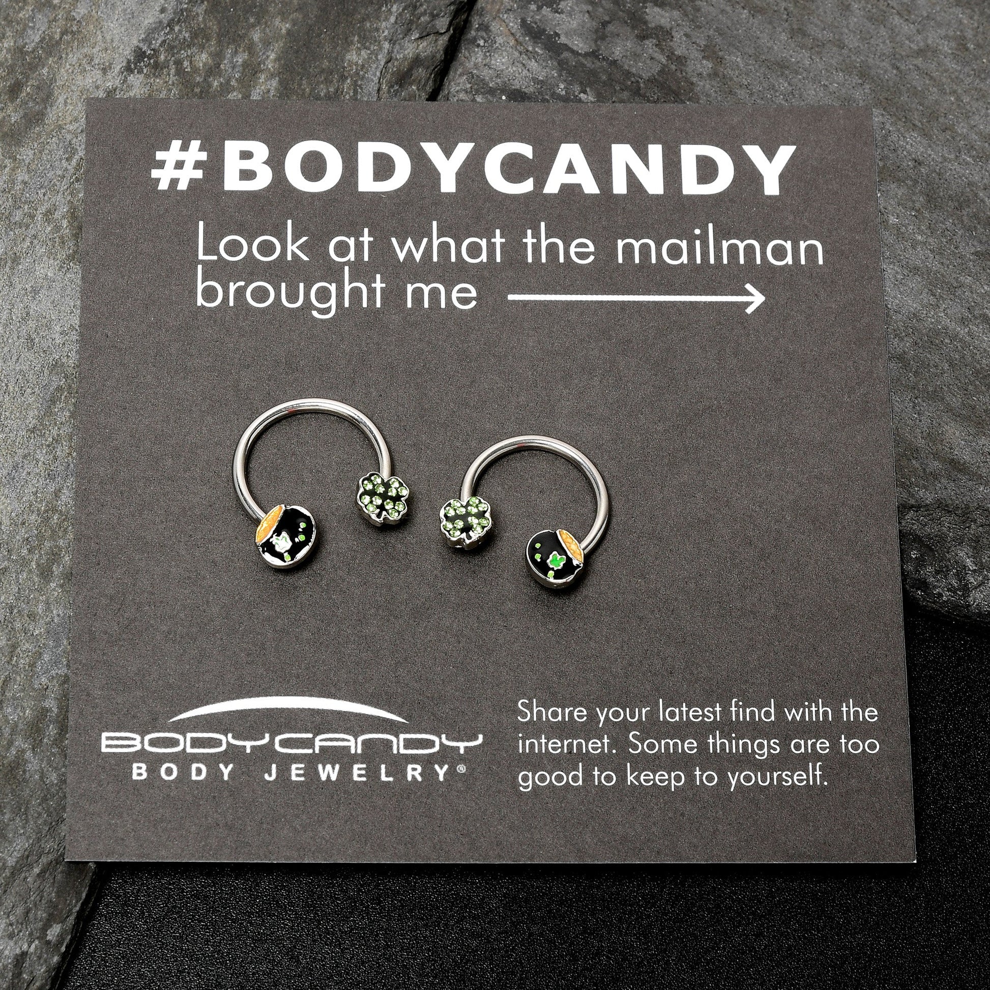 14G 9/16 Green Gem Shamrock Pot of Gold Horseshoe Nipple Ring Set
