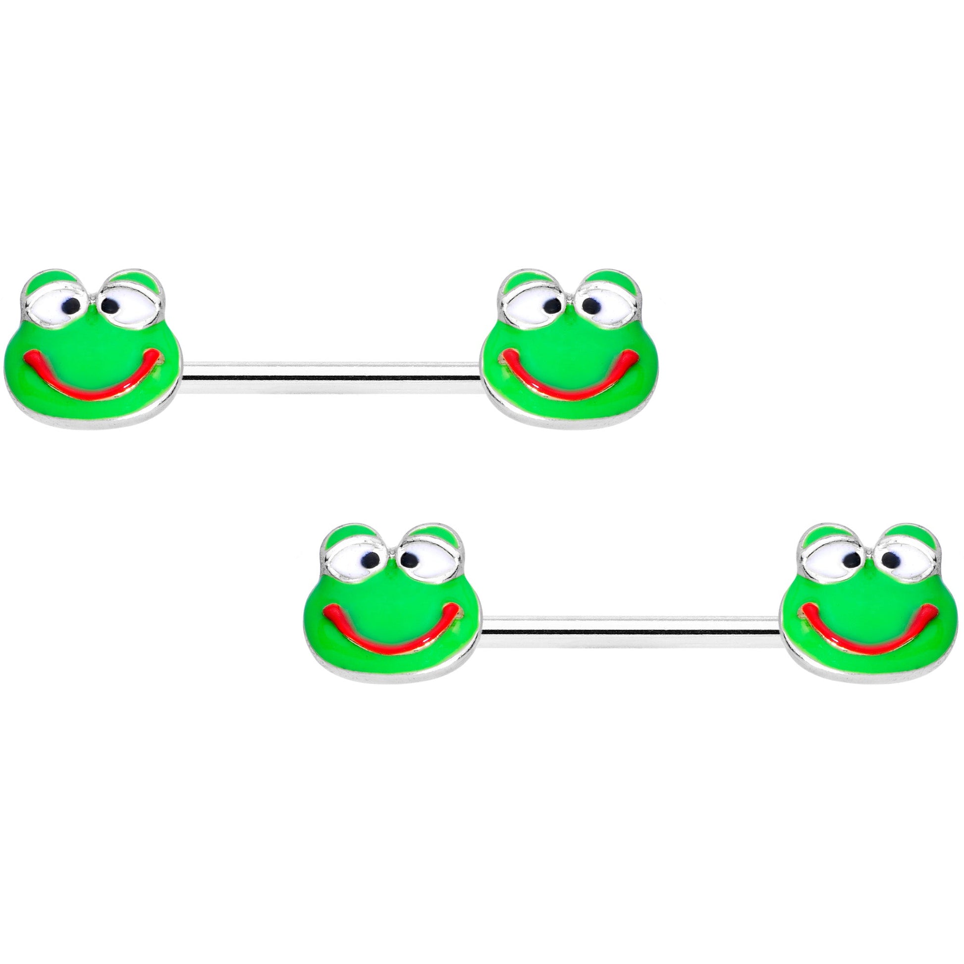 14G 9/16 Green Goofy Frog Barbell Nipple Ring Set