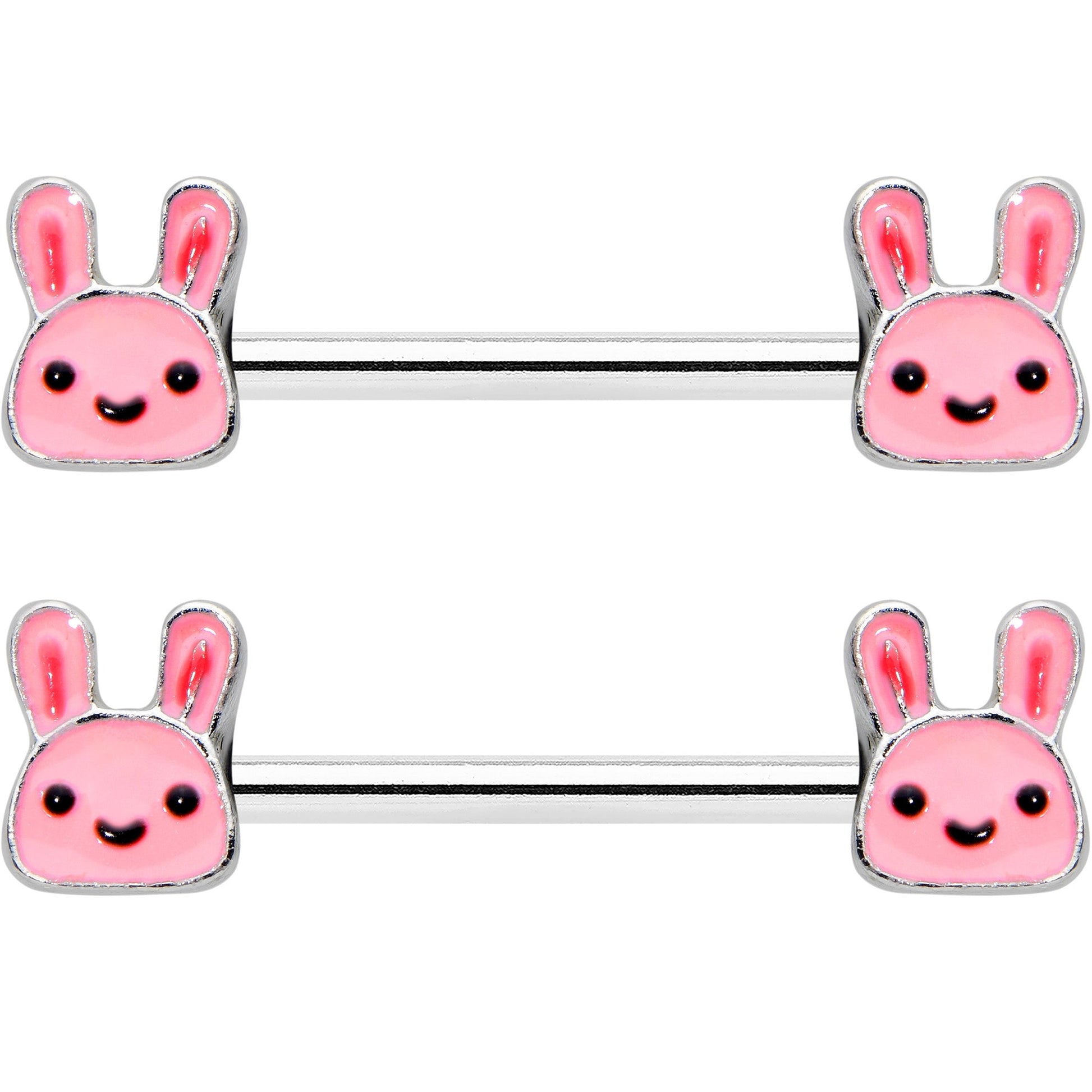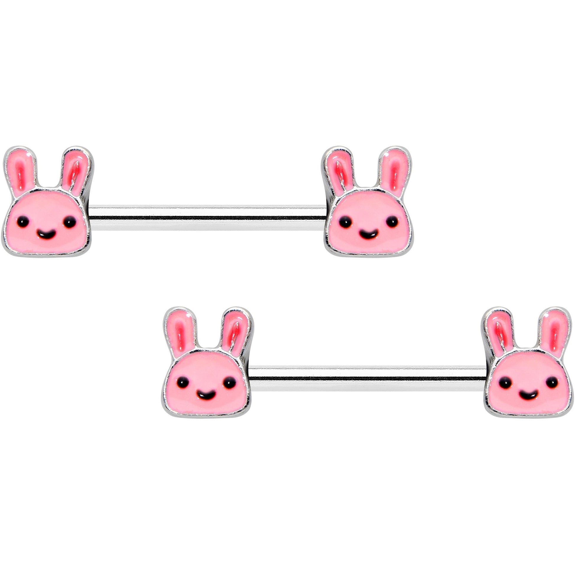 14G 9/16 Kawaii Cutie Easter Bunny Barbell Nipple Ring Set
