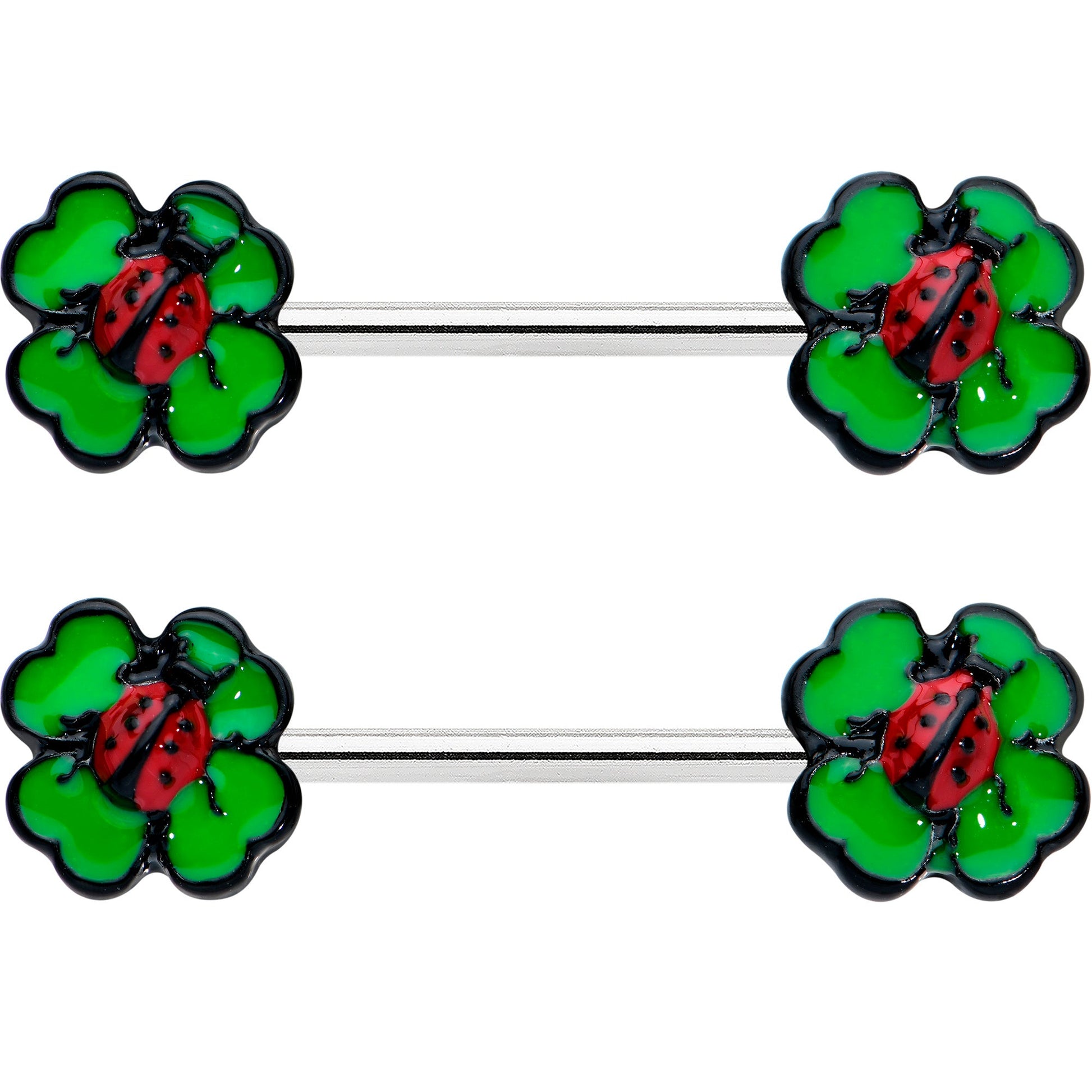 14G 9/16 Ladybug Shamrock St Patricks Day Barbell Nipple Ring Set