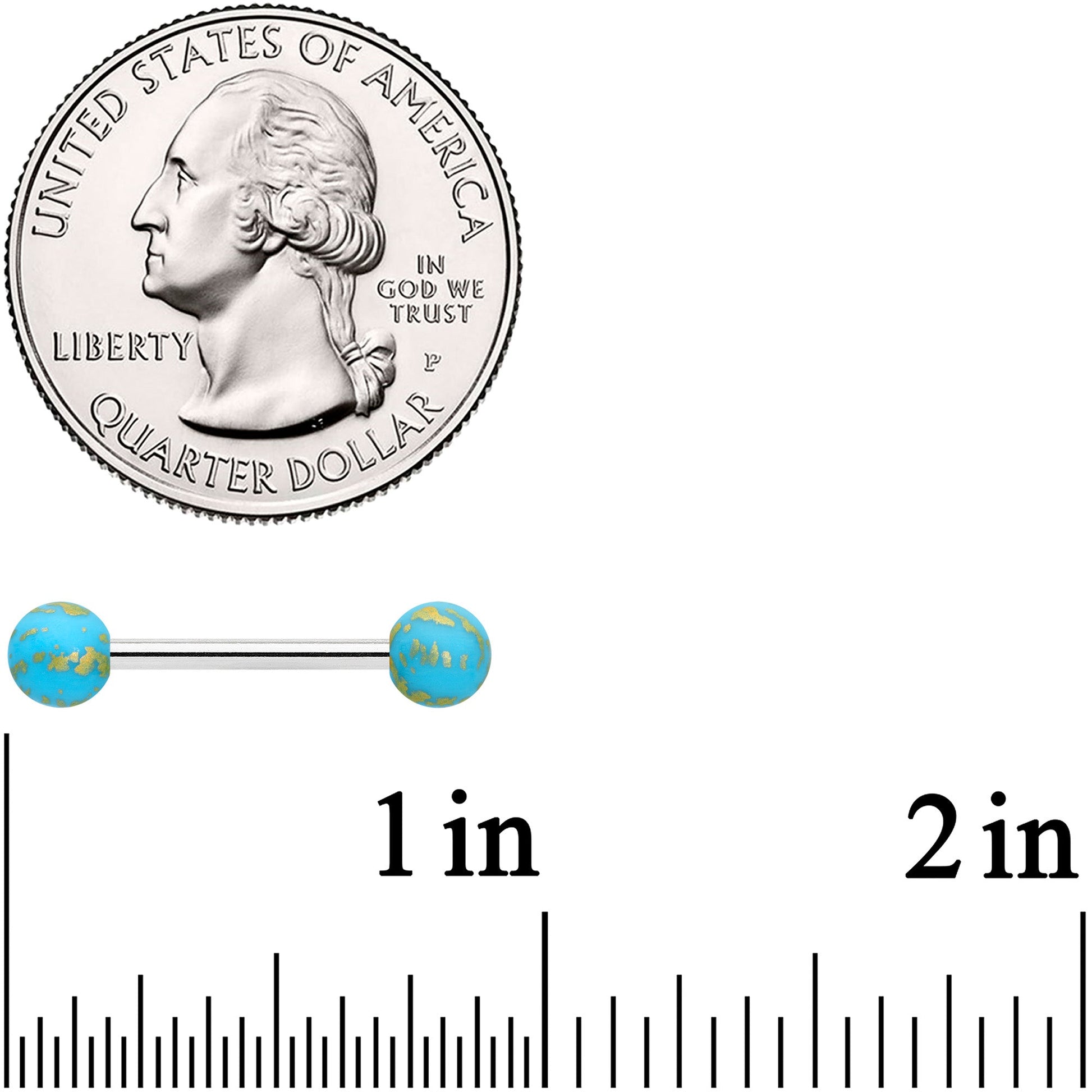 Don't let your look fall flat when you can go matte - like with this 14 gauge nipple jewelry! It's made with 14mm durable 316L surgical grade stainless steel straight barbells with 4mm ball ends. The ball ends are made with light blue acrylic and are embellished with a golden color splatter effect. They're further embellished with a matte finish for a truly stylish look. You'll be mad about matte with these splatter effect nipple piercing rings! Sold as a set of two.Specifications
