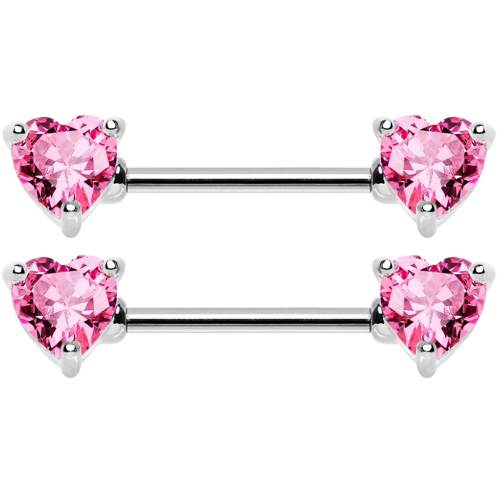 If you love options, then this is the piercing set for you! This nipple ring piercing pack comes with three different sets of Valentine's Day inspired colorful choices. The first is a durable 316L surgical grade stainless steel straight barbell with front facing, heart shaped pink gem ends. Next is a 316L surgical grade stainless steel straight barbell with front facing, heart shaped clear gem ends. The third is a straight barbell made with 316L surgical grade stainless steel and complete with front facing, heart shaped blue gem ends. All of the straight barbells are 14 gauge and measure 14mm in length. Sold as a set of six!
