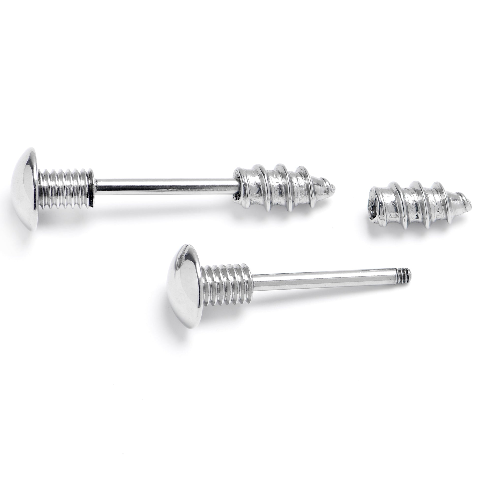 If you want a look that is a little edgy and a little sexy then try this unique 14 gauge nipple jewelry on for size. It is made with 14mm durable 316L surgical grade stainless steel straight barbells. They feature a screw design with the head at one point of the barbells and the point of the screw as the other end of the barbells. With these screw-inspired nipple piercing rings, you are ready to get to work. Sold as a set of two.Specifications