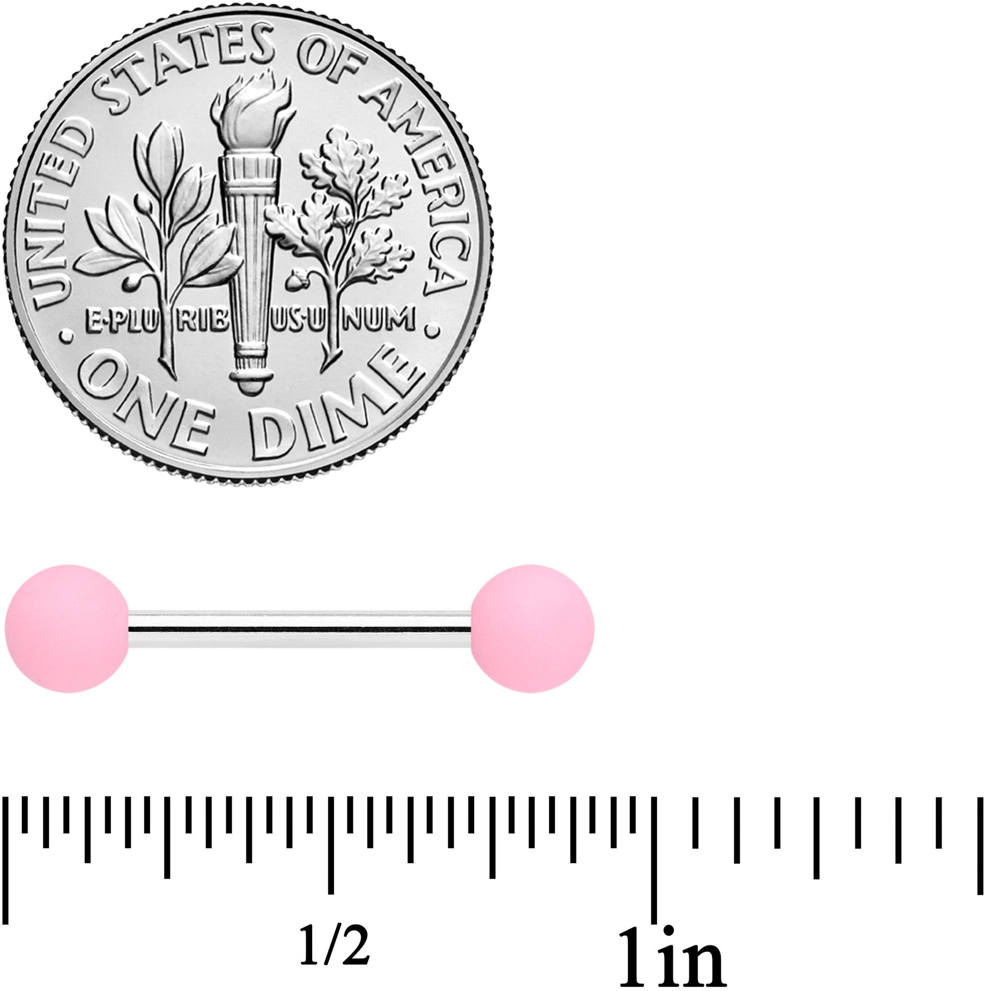 Simple style and precious pink combine to make comfortable and dainty nipple jewelry with these 14 gauge nipple rings! They're made with 14mm durable 316L surgical grade stainless steel straight barbells. The 5mm ball ends are pale pink with a subtly soft, matte finish to them. Keep it simple while still keeping it stylish with these perfectly pink nipple rings! Sold as a set of two.Specifications