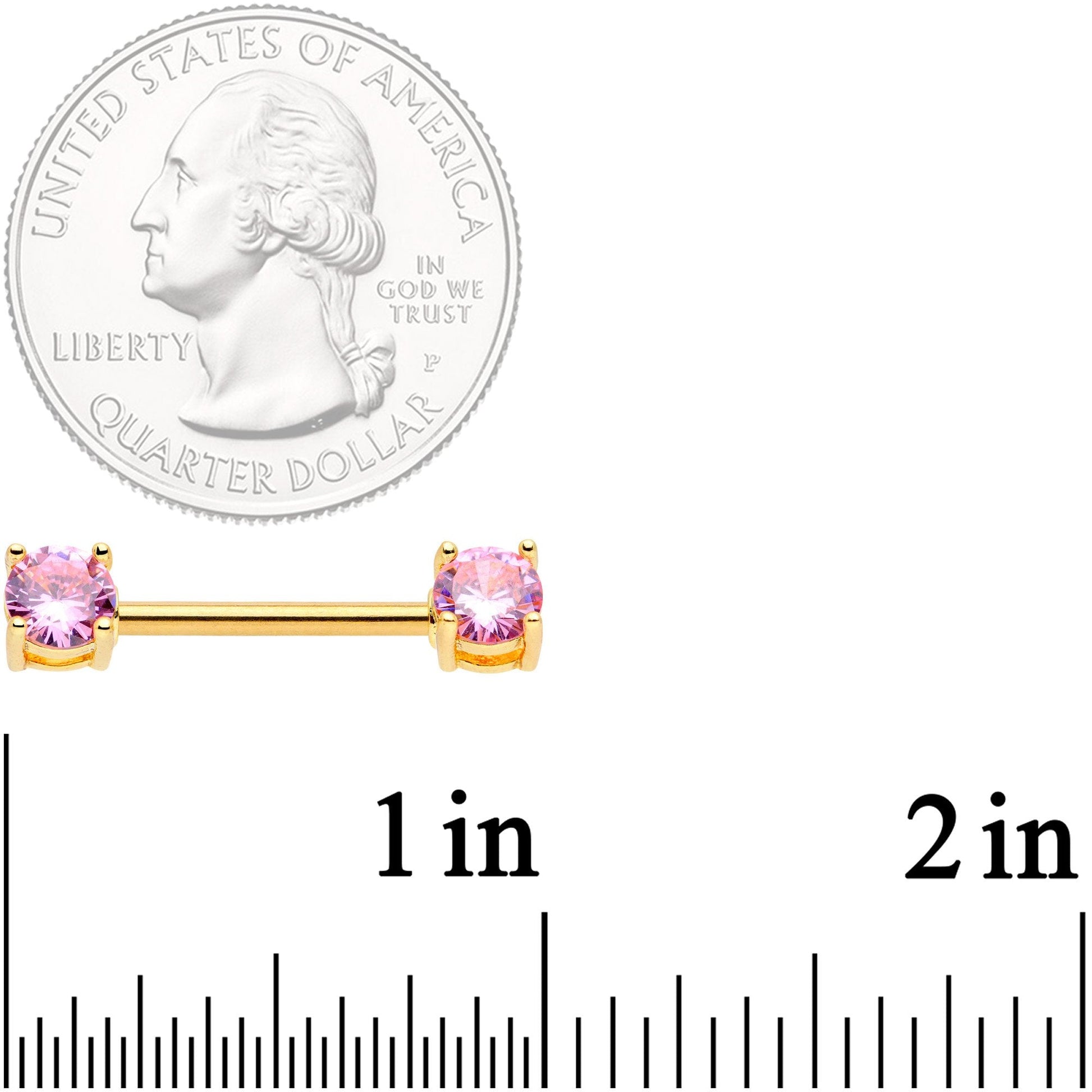 Add some sexy glamour to your 14 gauge nipple piercings! This nipple jewelry set is made with 14mm gold tone anodized over 316L surgical grade stainless steel straight barbells. The ends are pink cubic zirconia gems. If you like to keep it simple but still love a look of luxury, these nipple rings are exactly what you're looking for! Sold as a set of two.Specifications