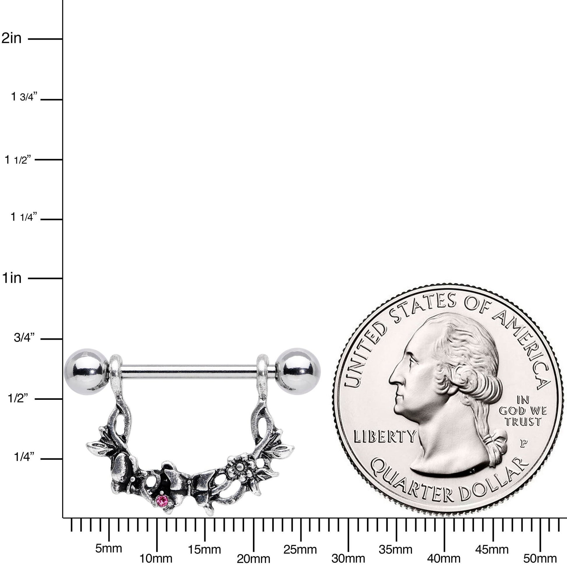 14 Gauge 9/16 Pink Gem Abstract Bow Butterfly Dangle Nipple Ring Set