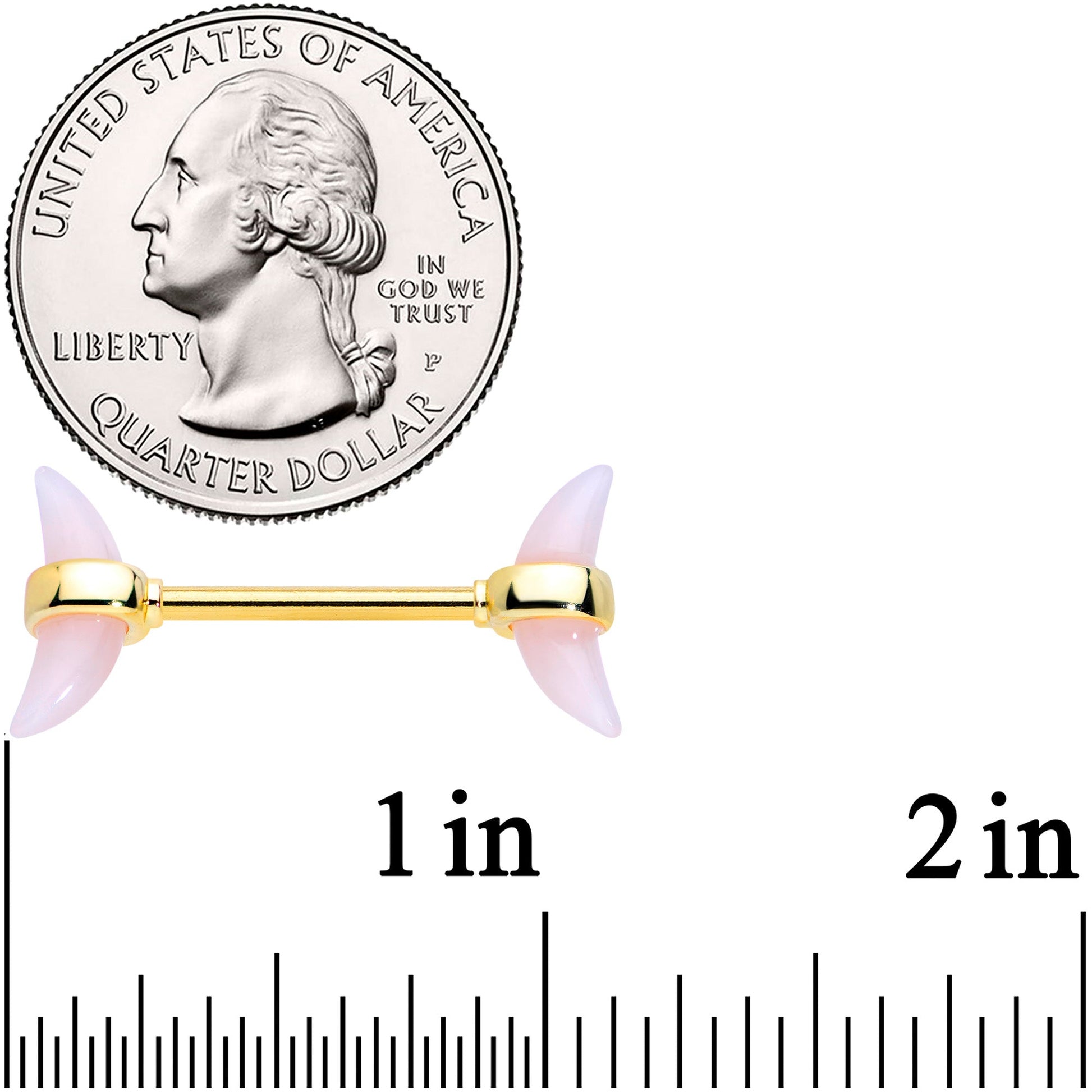 14G 9/16 Pink Gem Gold Tone Crescent Barbell Nipple Ring Set