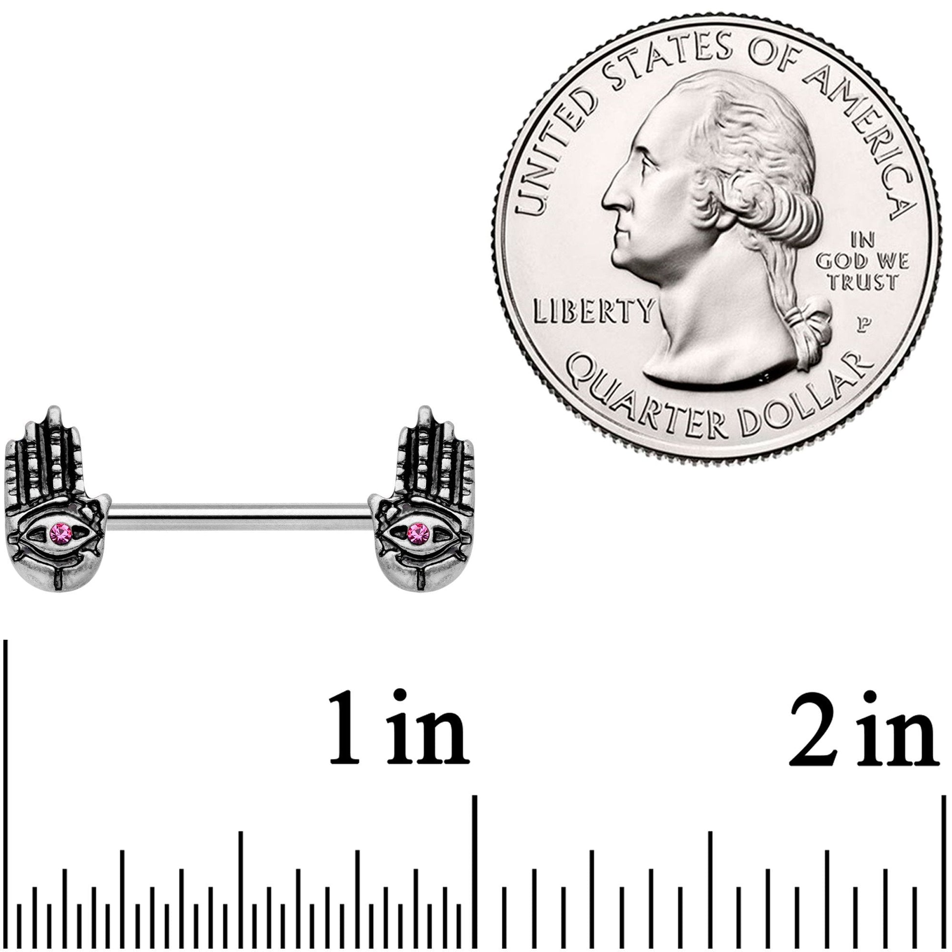 14G 9/16 Pink Gem Hamsa Hand Barbell Nipple Ring Set
