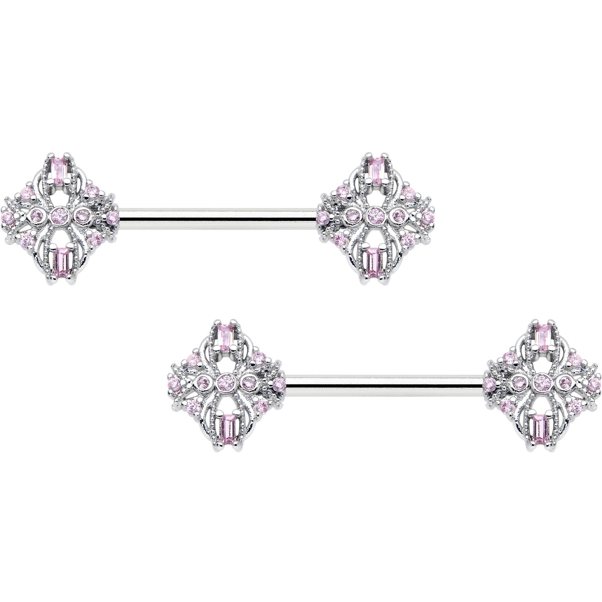 14G 9/16 Pink Gem Opulent Cross Barbell Nipple Ring Set