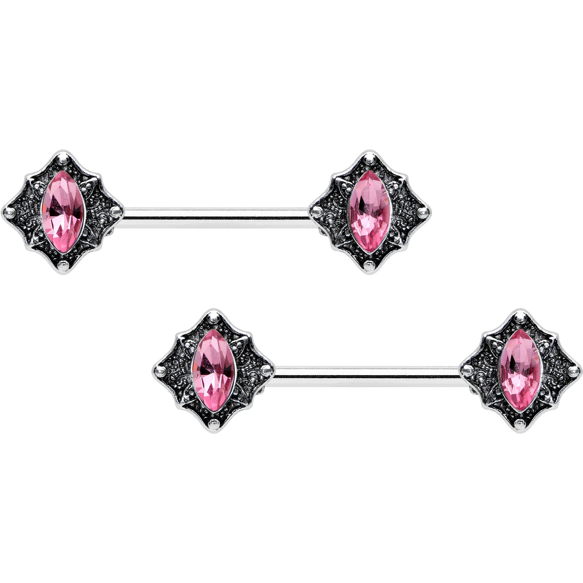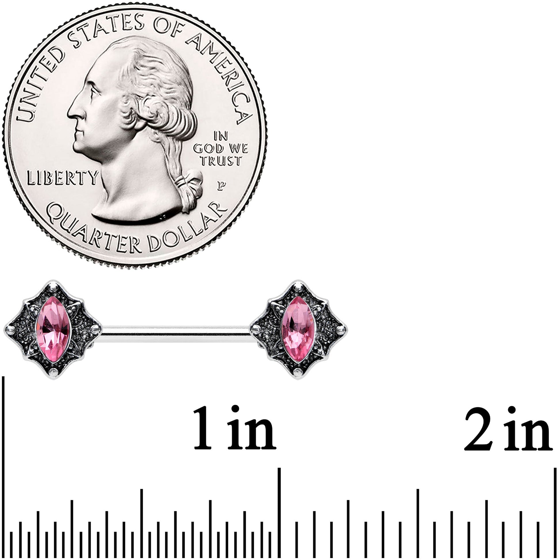 14G 9/16 Pink Gem Rhombus Retro Barbell Nipple Ring Set