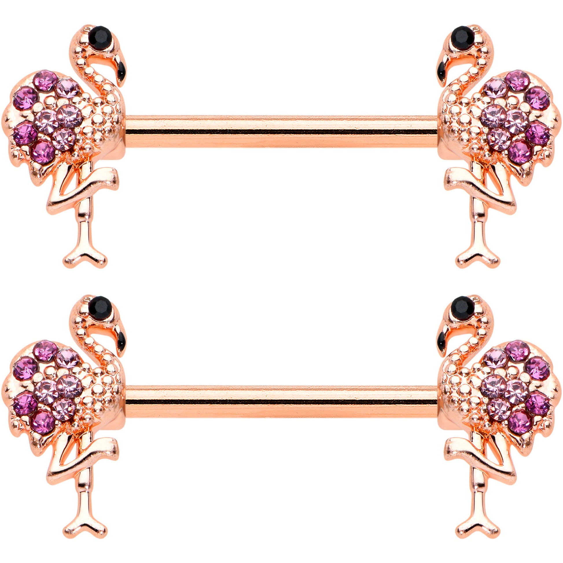 14G 9/16 Pink Gem Rose Gold Hue Fashion Flamingo Nipple Ring Set