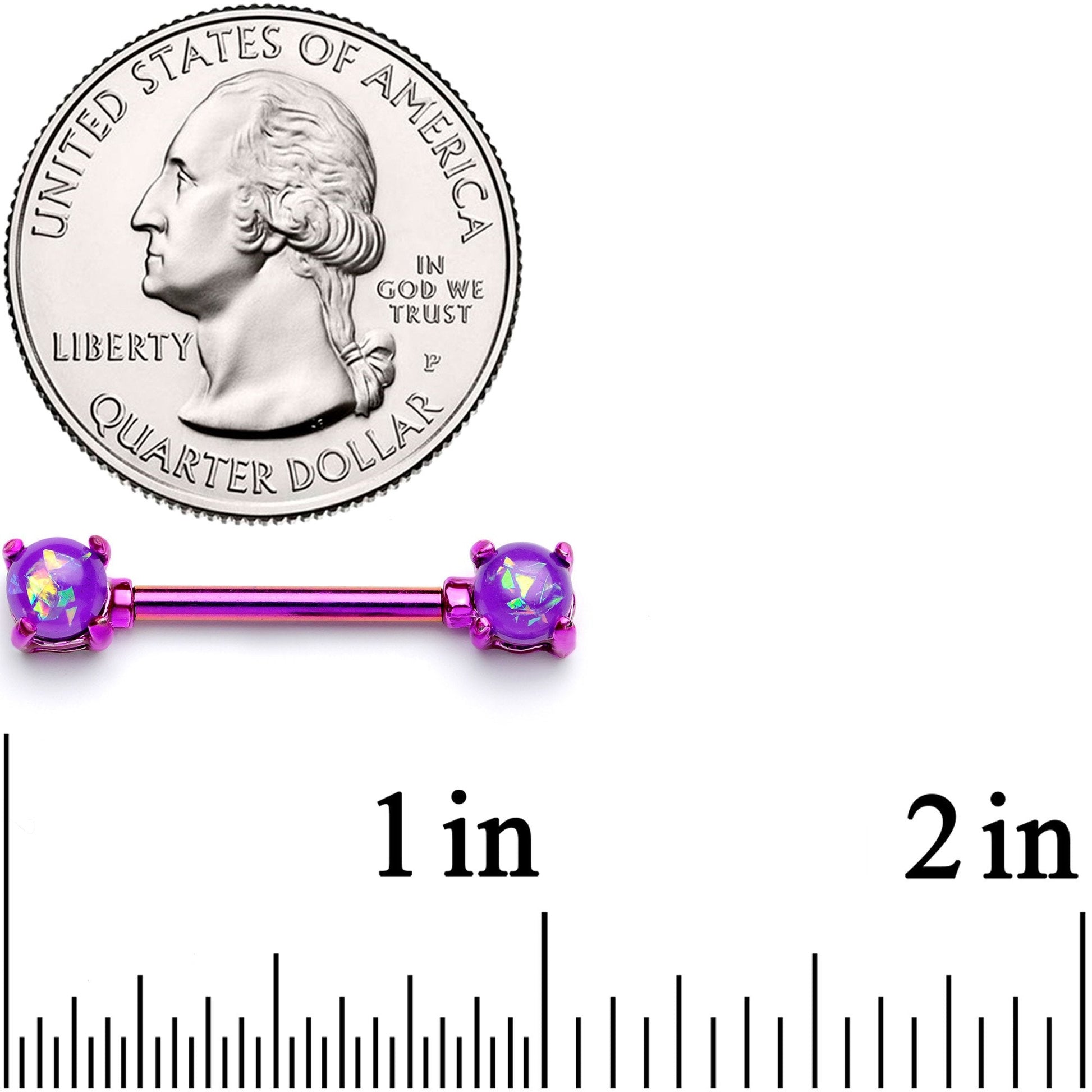 14G 9/16 Purple Faux Opal Purple Barbell Nipple Ring Set