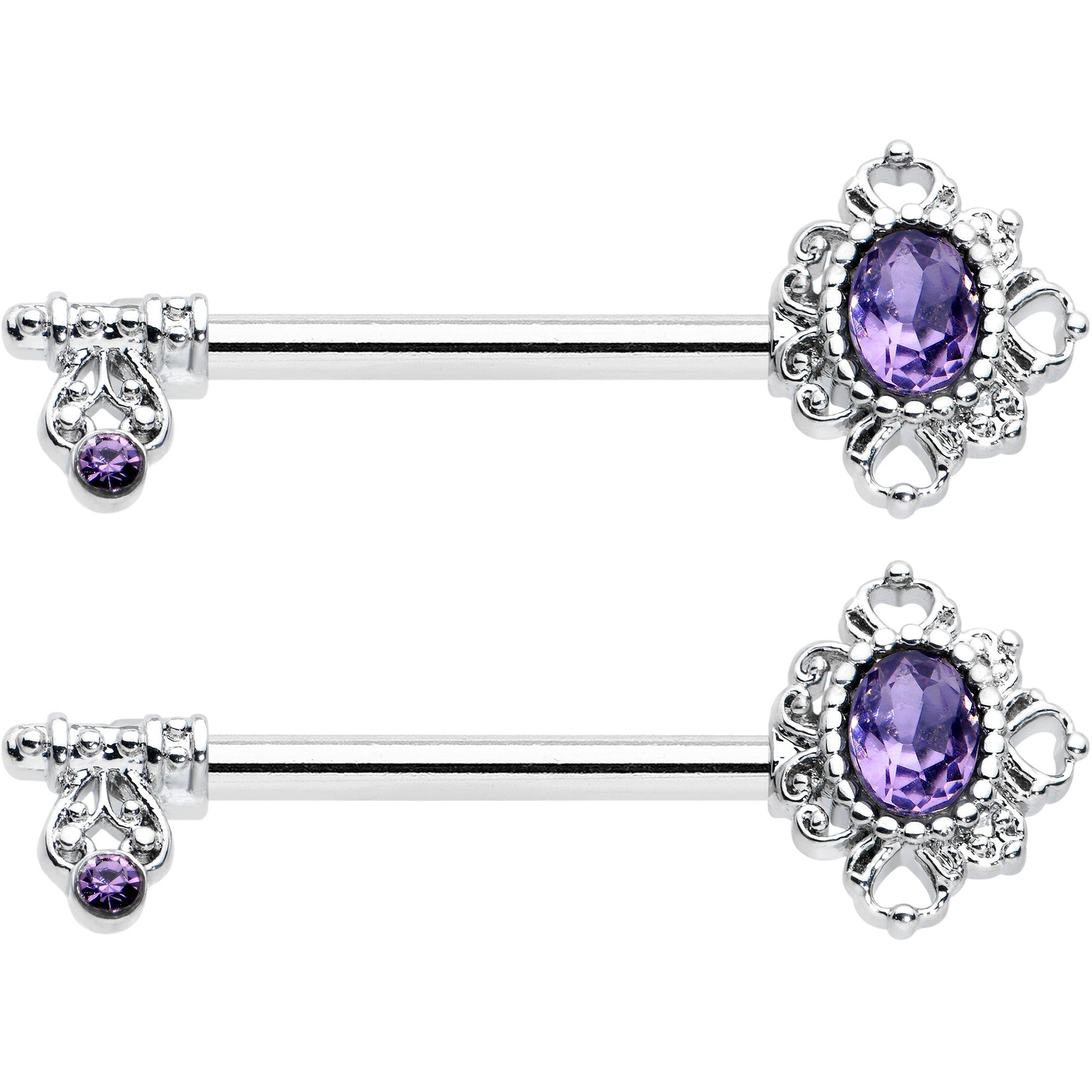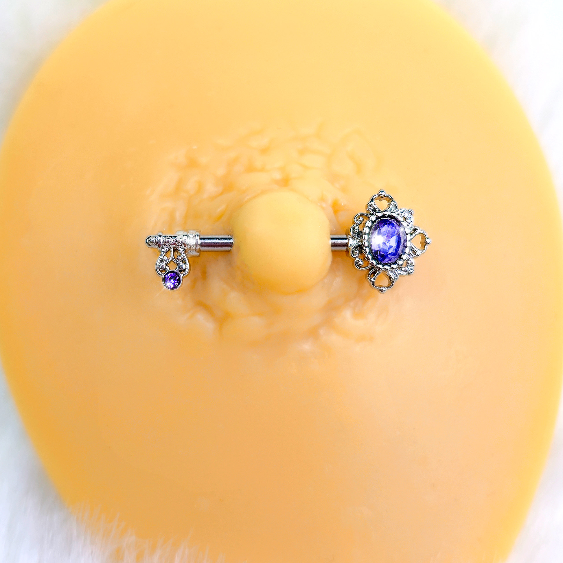 14G 9/16 Purple Gem Unlock My Heart Key Barbell Nipple Ring Set