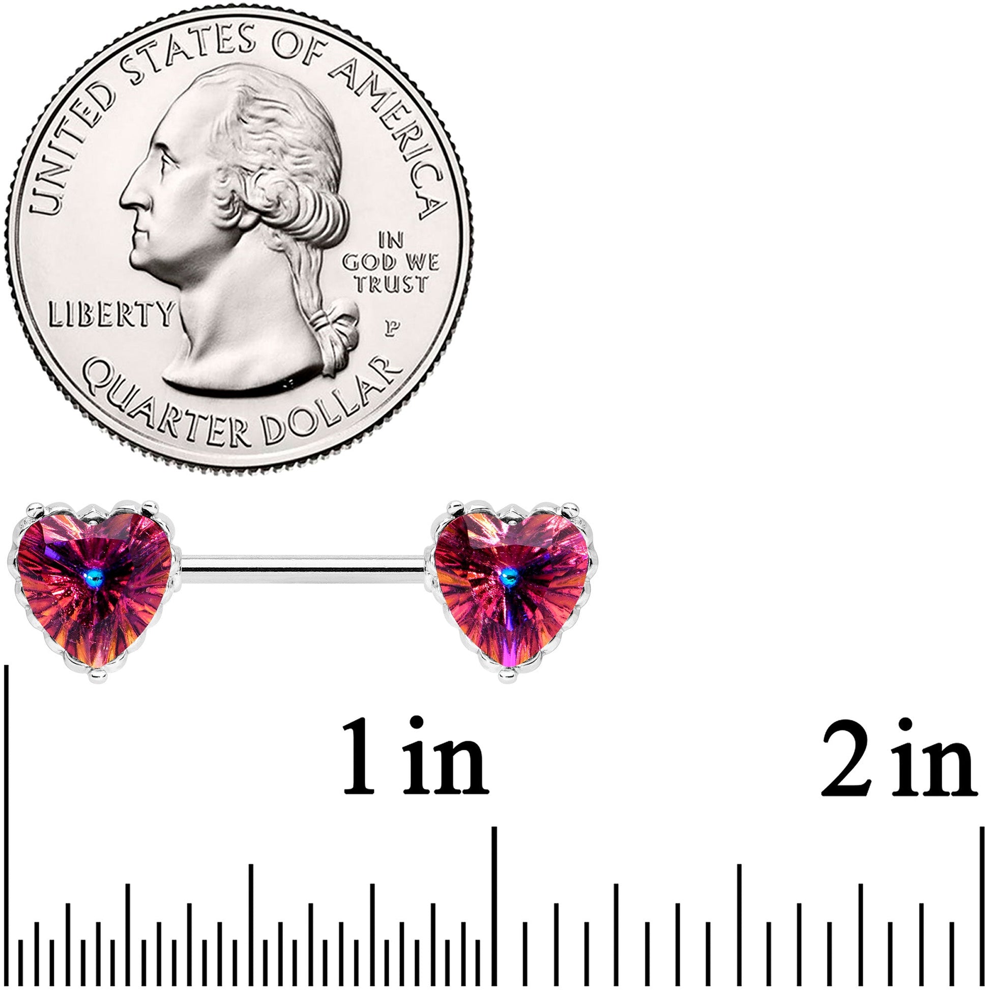 14G 9/16 Red CZ Gem Heart Love Valentine Barbell Nipple Ring Set