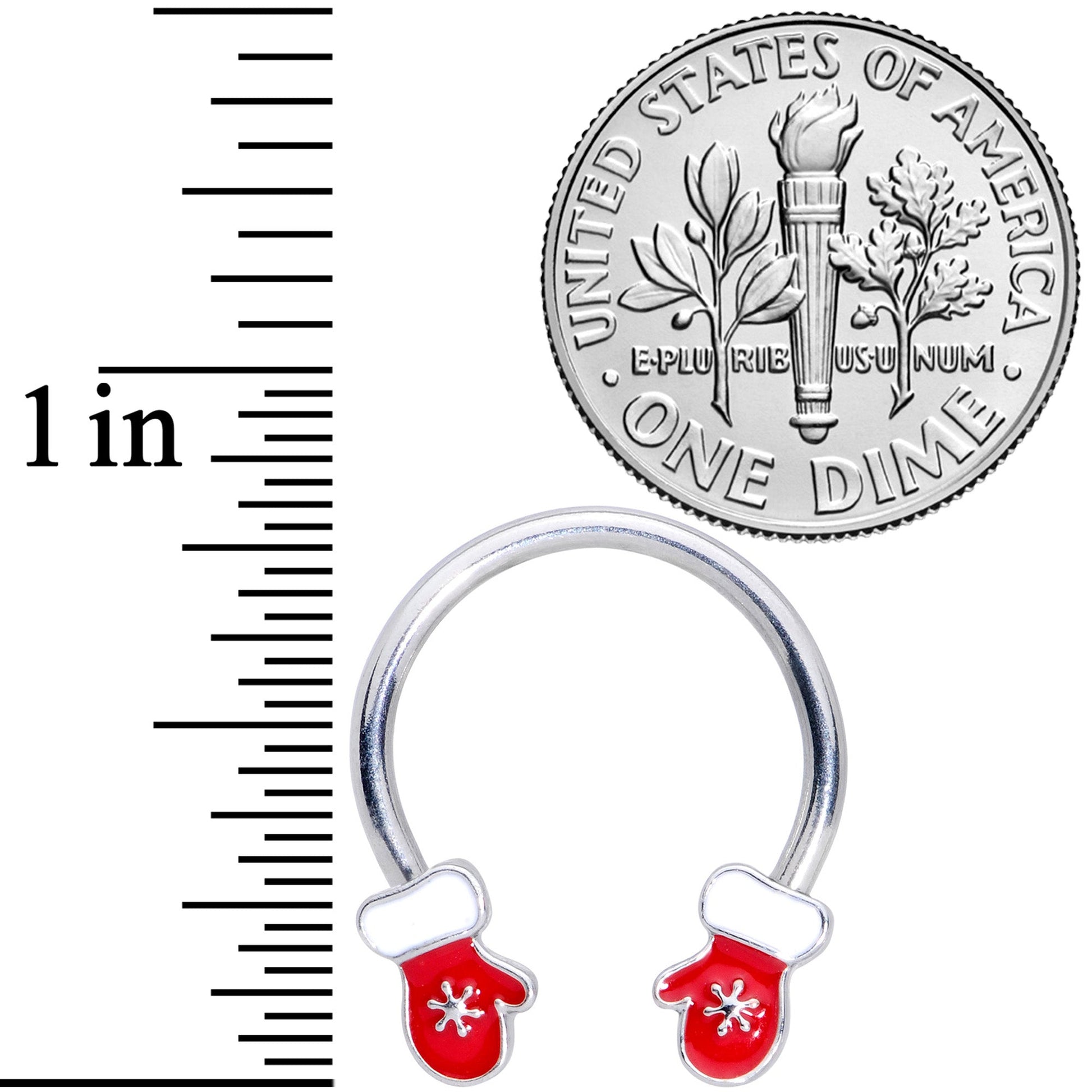 Ho, ho.....whoah! This 14 gauge nipple jewelry isn't just festive, it's also adorably whimsical! It's made with 14mm durable 316L surgical grade stainless steel circular barbells and features red and white mitten charms with pretty snowflakes that look just like Santa's! If you're feeling nice or just a little bit naughty, let Santa's mittens dangle from your nipple piercings with these fun, holiday nipple rings! Sold as a set of two.Specifications