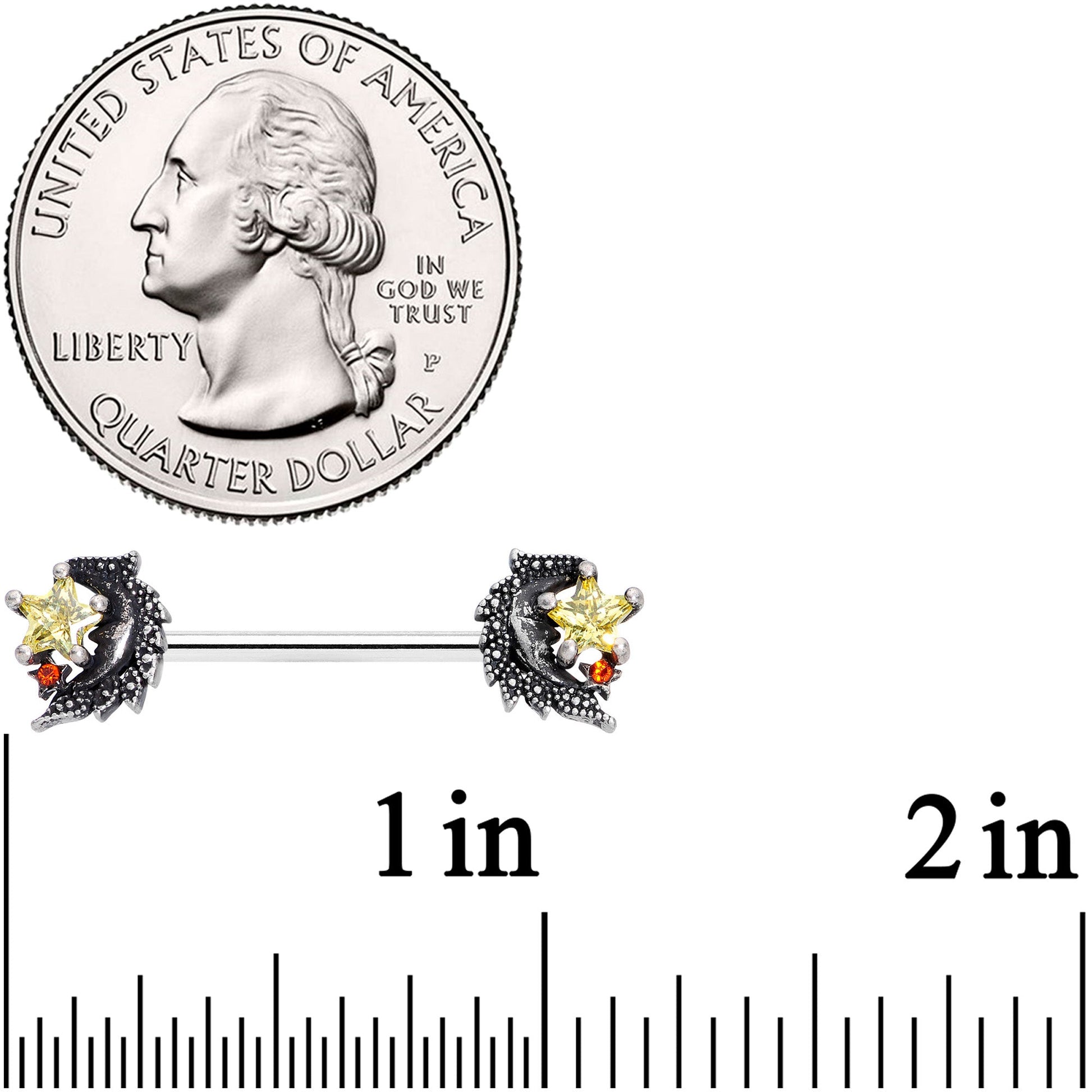 14G 9/16 Red Yellow Gem Shooting Star Barbell Nipple Ring Set