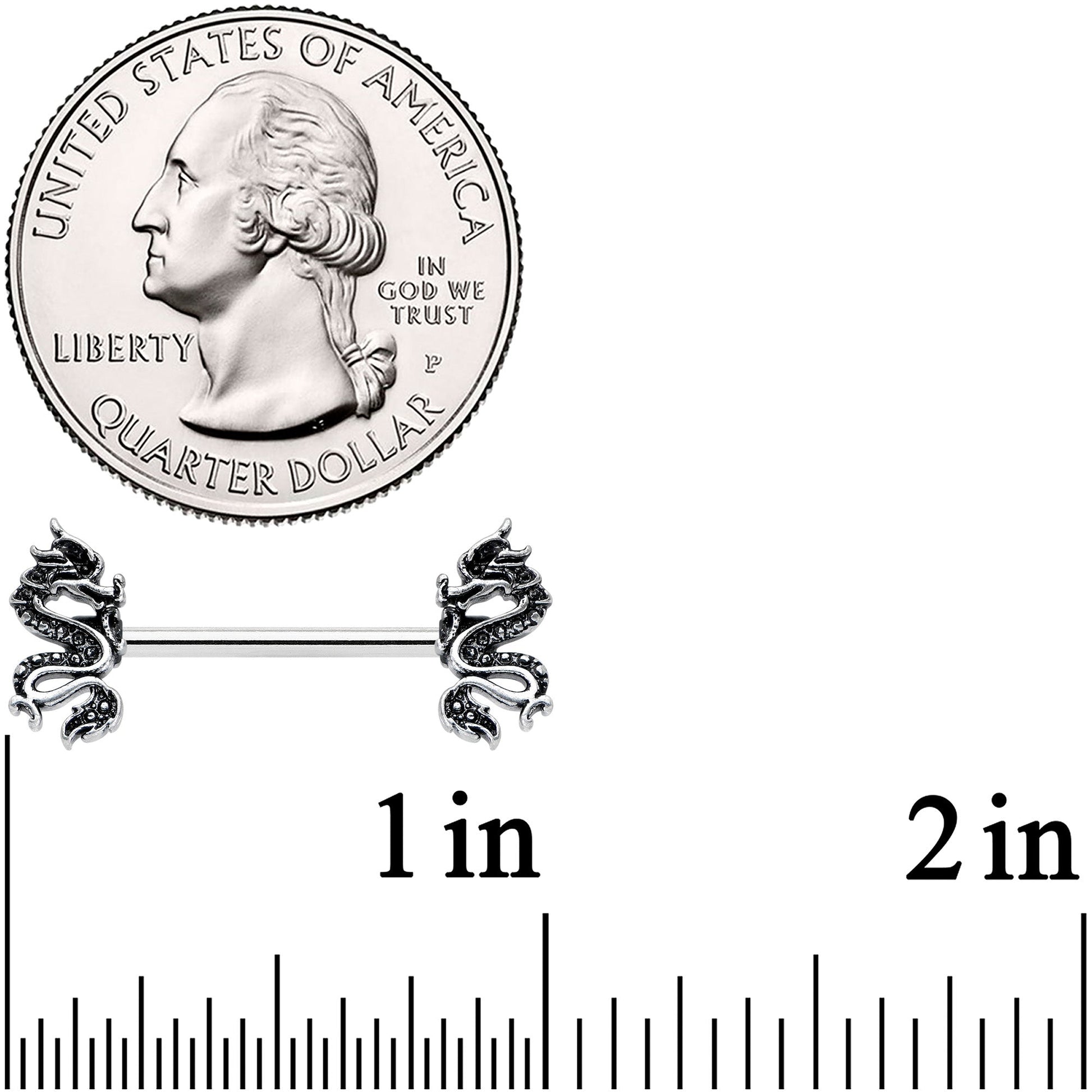 14 Gauge 9/16 Regal Medieval Dragon Barbell Nipple Ring Set