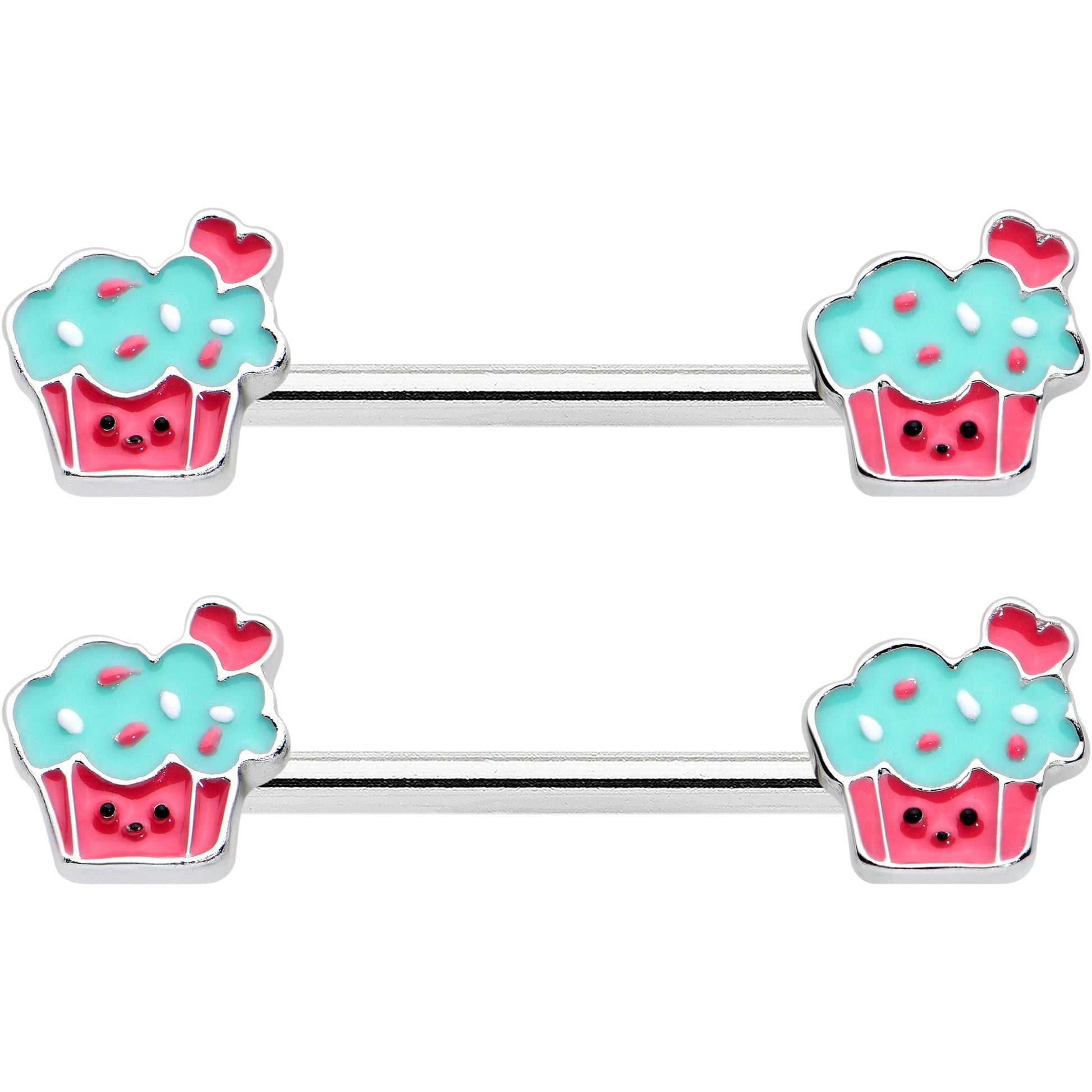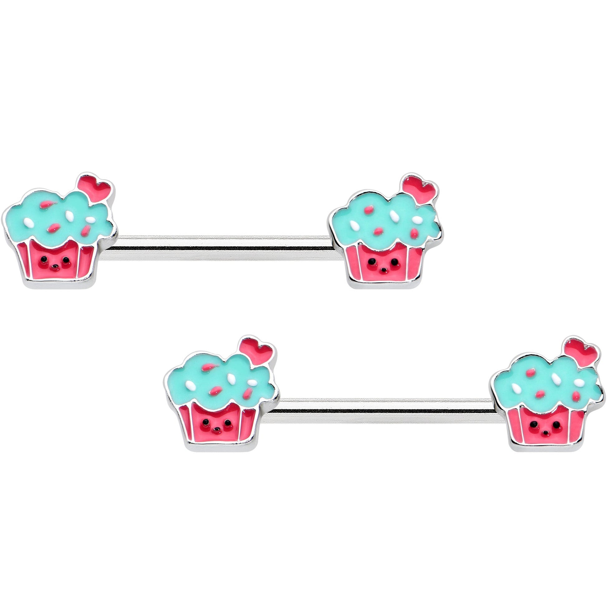 14 Gauge 9/16 Sweet Happy Cupcake Barbell Nipple Ring Set