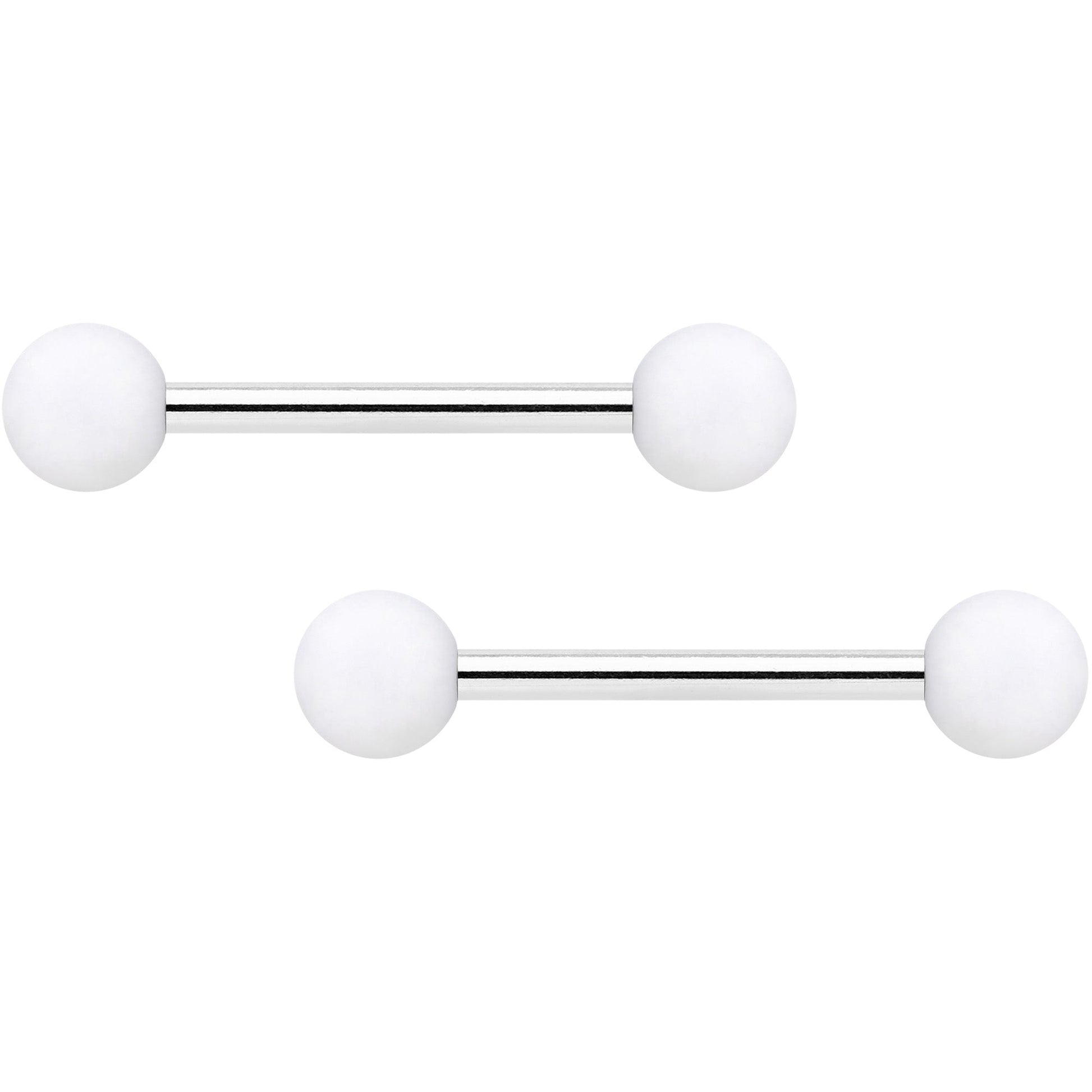 Simple style and elegantly understated color combine to make comfortable and dainty nipple jewelry with these 14 gauge nipple rings! They're made with 14mm durable 316L surgical grade stainless steel straight barbells with 5mm ball ends. One pair has tan ends while the other pair is white, and both have a subtly soft, matte finish to them. Keep it simple while still keeping it stylish with these elegantly earth-toned nipple rings! Sold as a set of four.Specifications