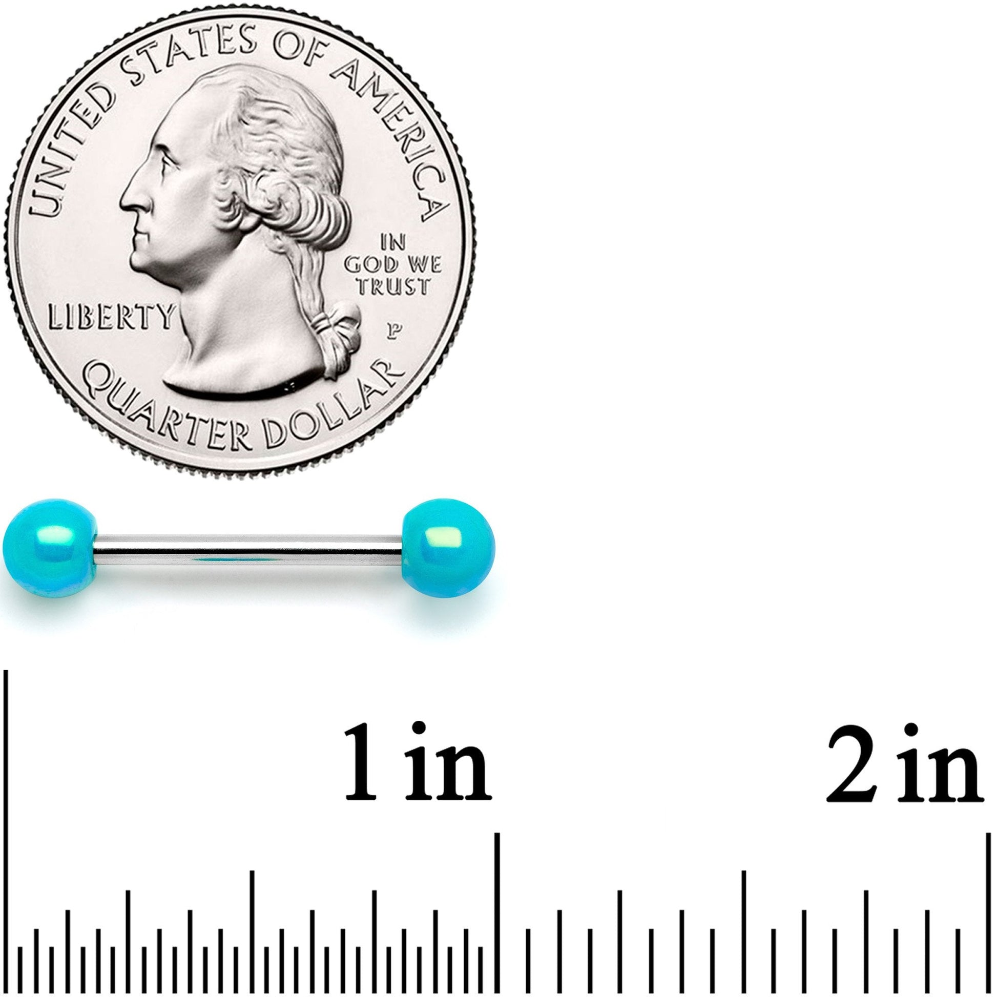 Is teal your deal? Then these are right up your alley! These 14 gauge nipple rings are made of durable 316L surgical grade stainless steel straight barbells and have pearlescent acrylic ball ends. They're 14mm for a comfortable fit as well as longevity. If you're into teal, show off how you feel! Sold as a pair.Specifications