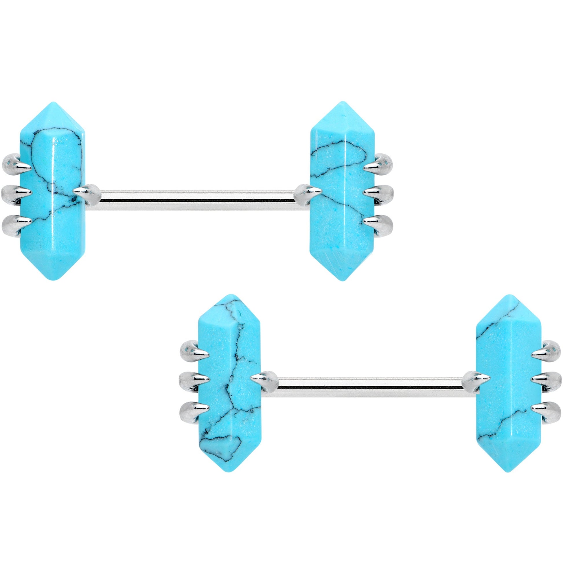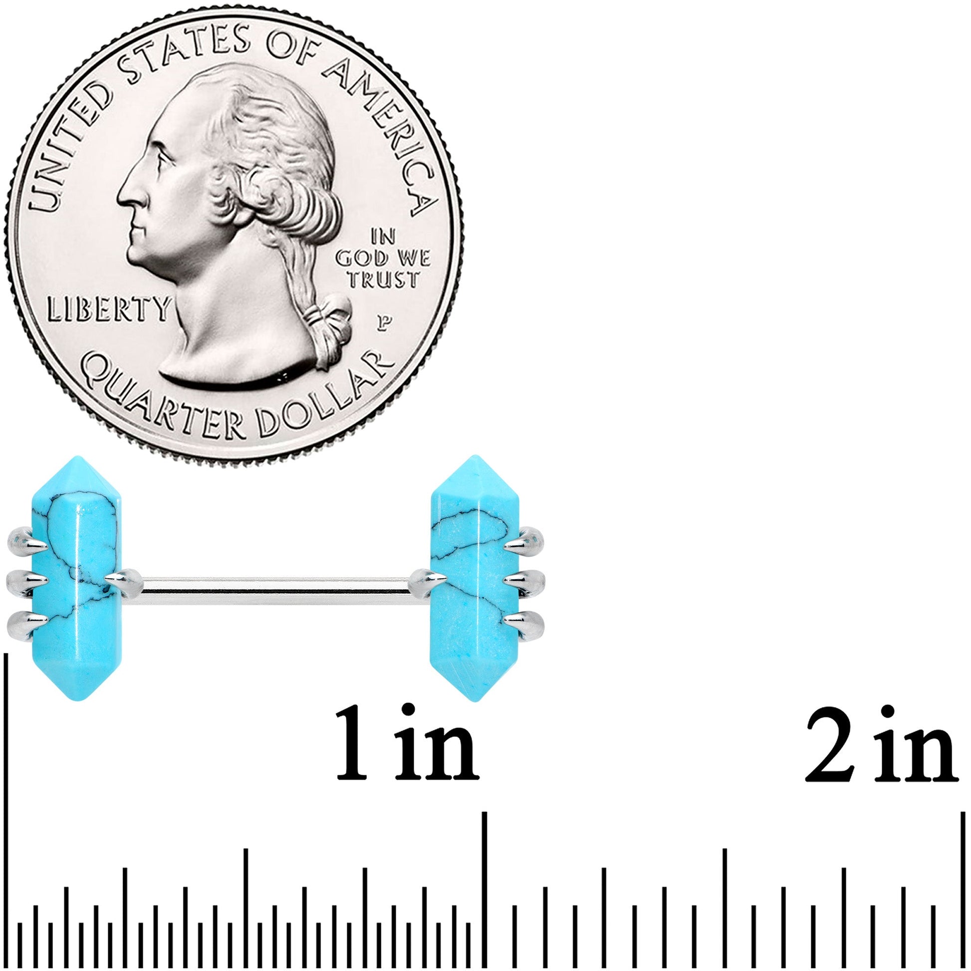 14G 9/16 Turquoise Stone Obelisks Barbell Nipple Ring Set