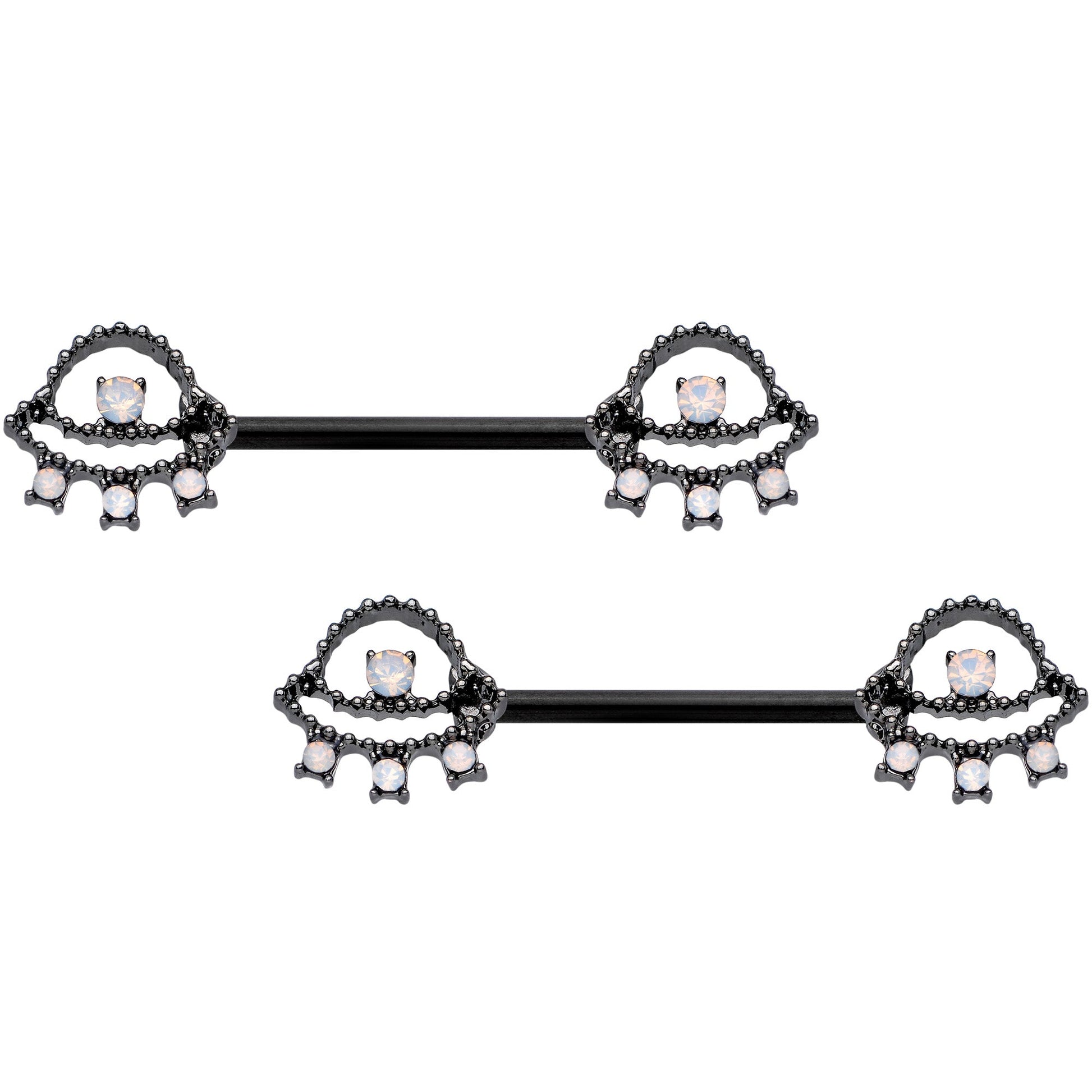 14G 9/16 White Faux Opal Black UFO Barbell Nipple Ring Set