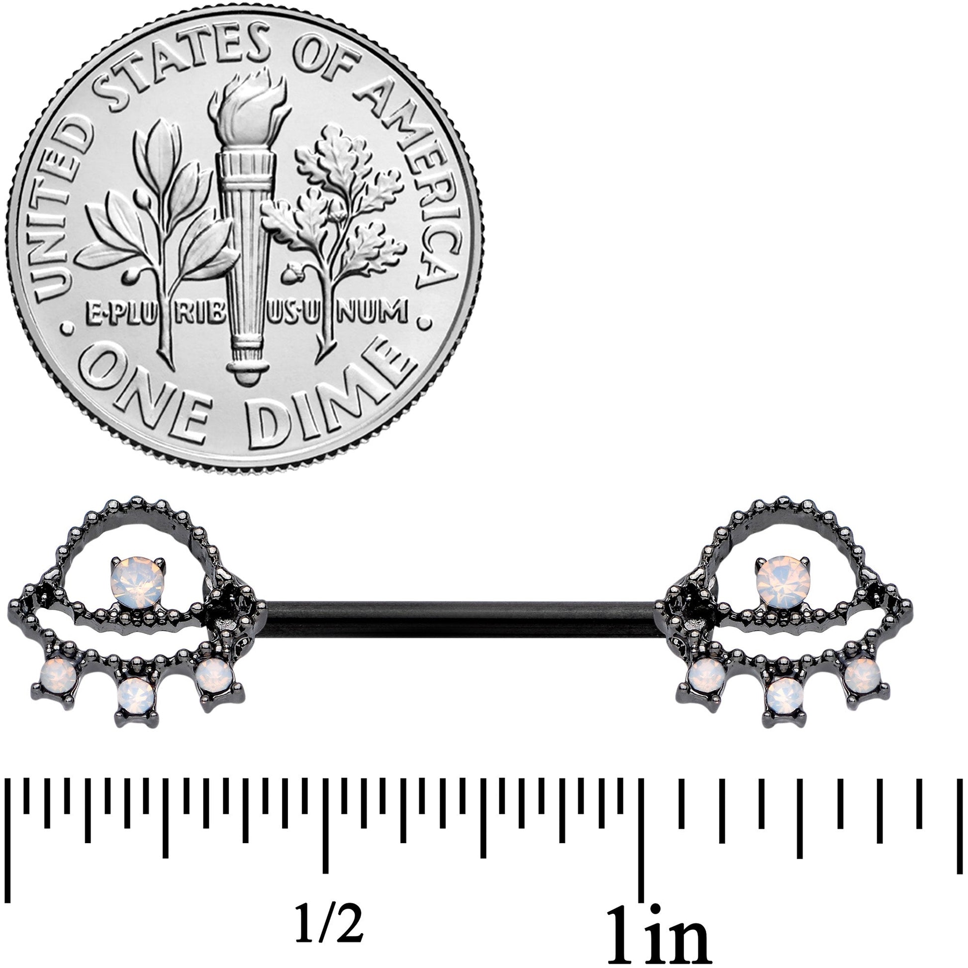 14 Gauge 9/16 White Faux Opal Black UFO Barbell Nipple Ring Set