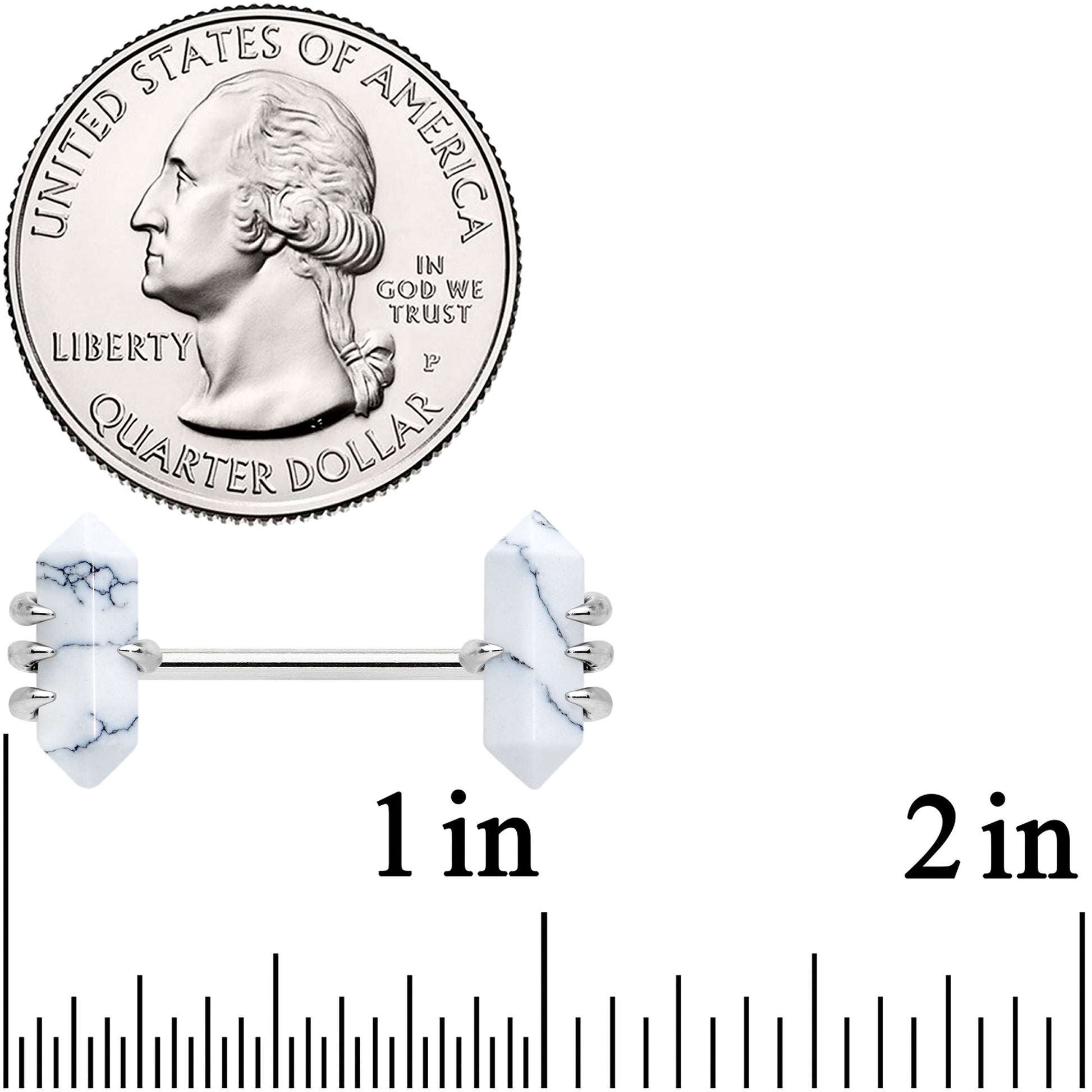 14G 9/16 White Howlite Stone Obelisks Barbell Nipple Ring Set