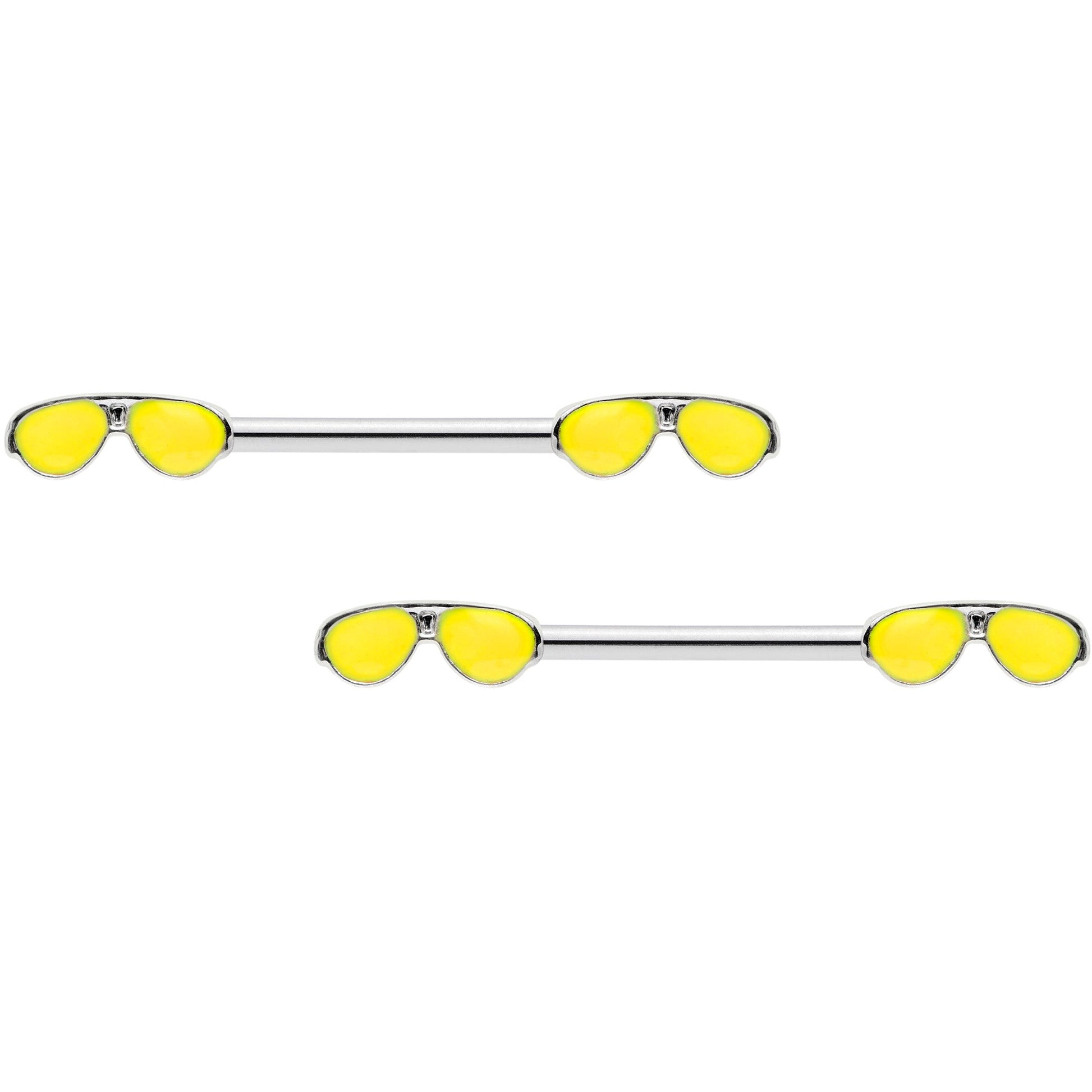 14 Gauge 9/16 Yellow Aviator Sunglasses Barbell Nipple Ring Set