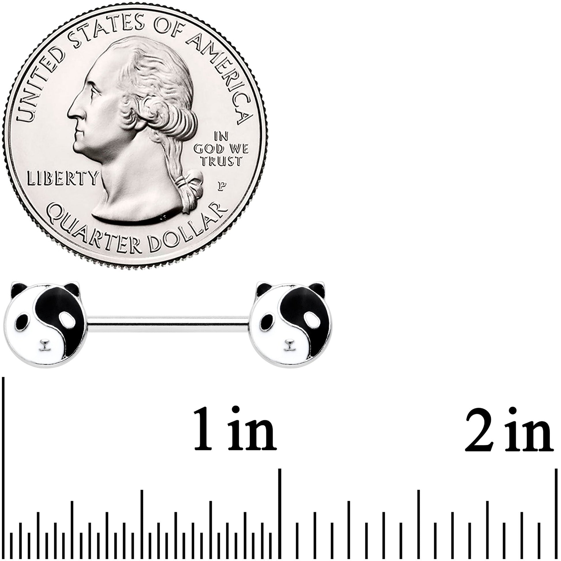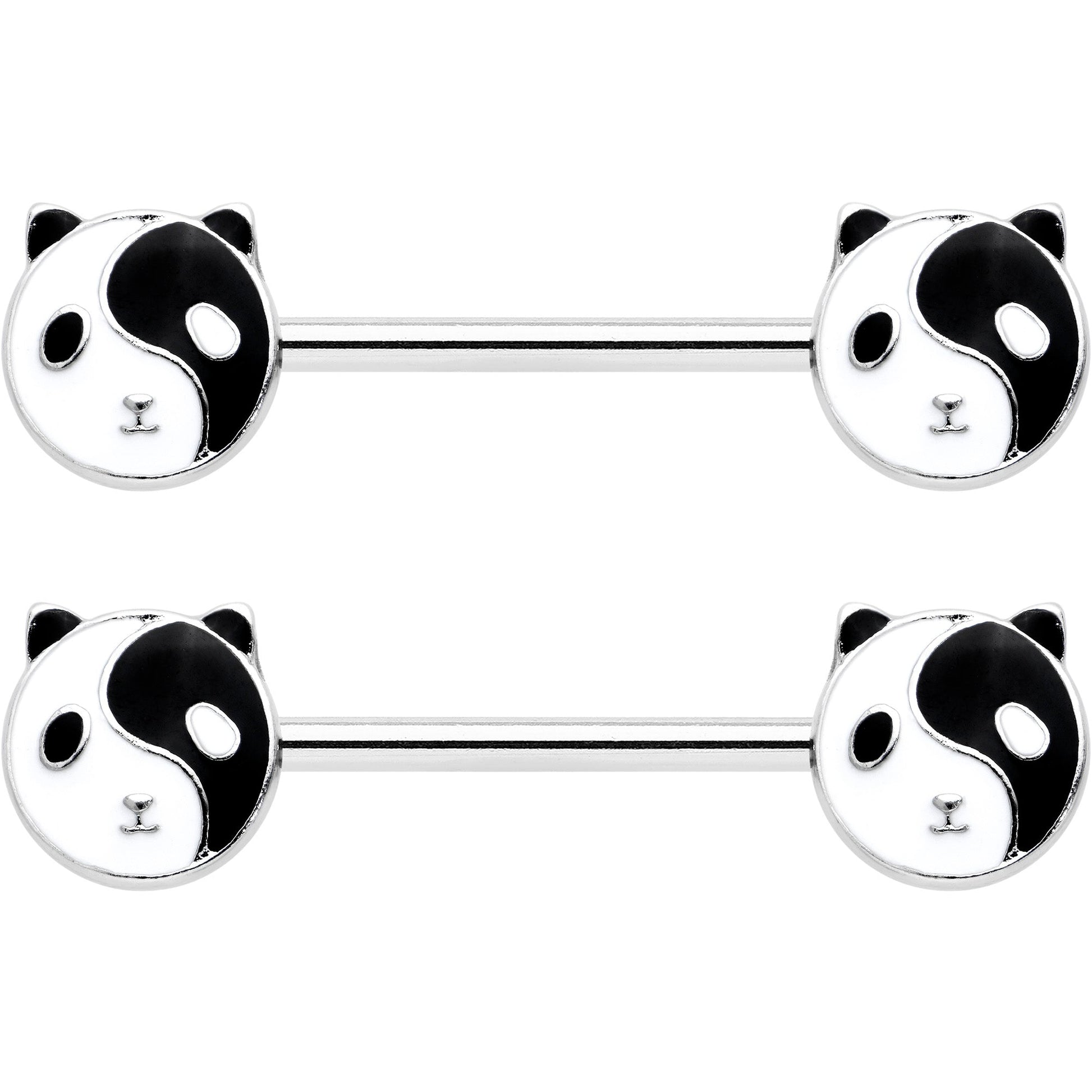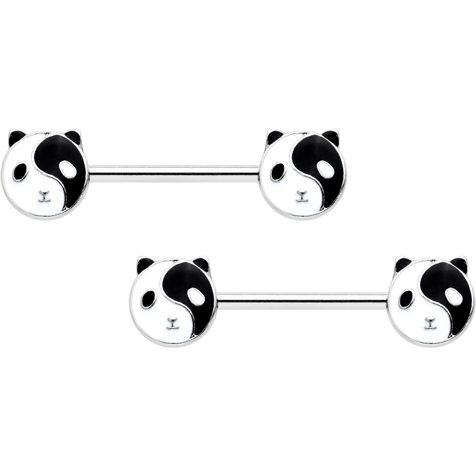 14G 9/16 Yin Yang Panda Bear Barbell Nipple Ring Set