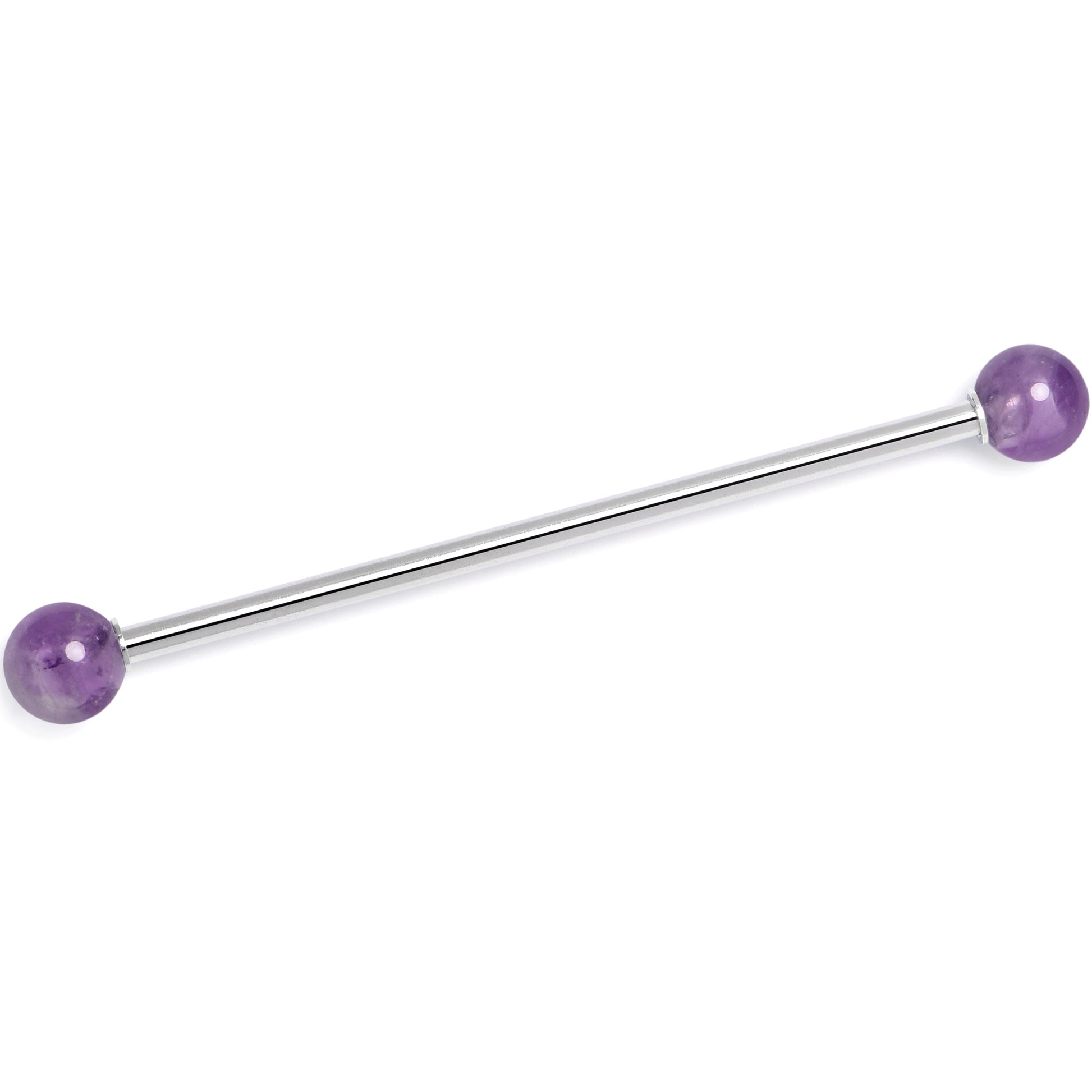 Take the classics and add a shot of glamorous style with this 14 gauge helix barbell. It is made with a 1 1/2 inch 316L surgical grade stainless steel straight barbell. It features 5mm natural purple amethyst stone ball ends, adding a touch of lovely color that is sure to get noticed. Join the band of glam with this elegant barbell earring.Specifications