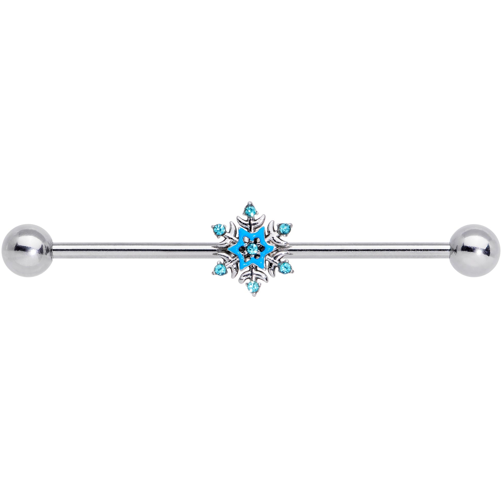 14G Aqua Gem Winter Snowflake Christmas Industrial Barbell 38mm