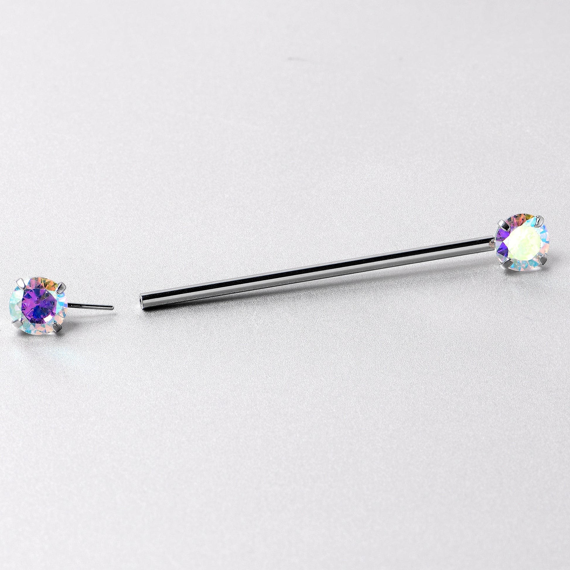 14 Gauge Aurora CZ Gem Threadless Industrial Barbell 38mm