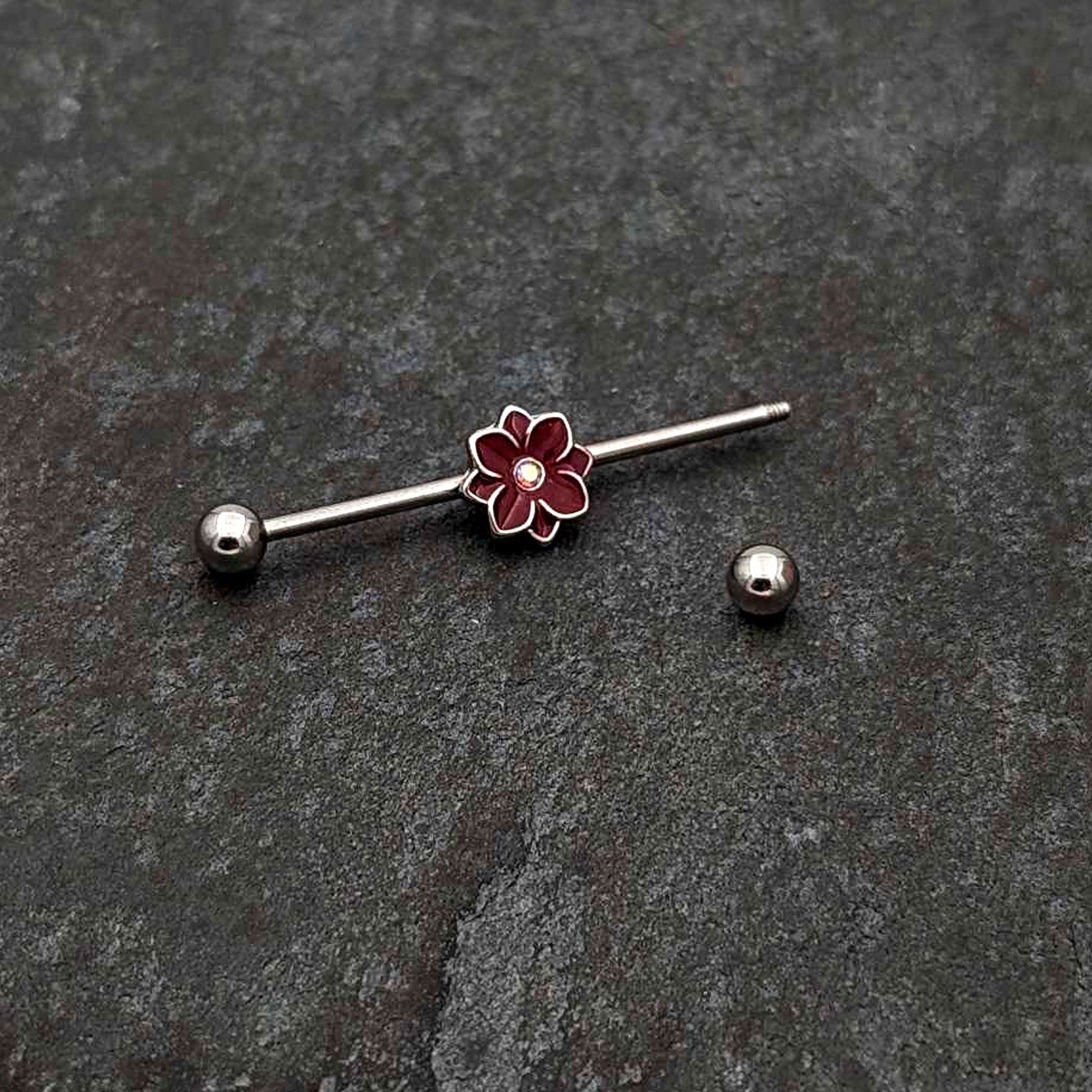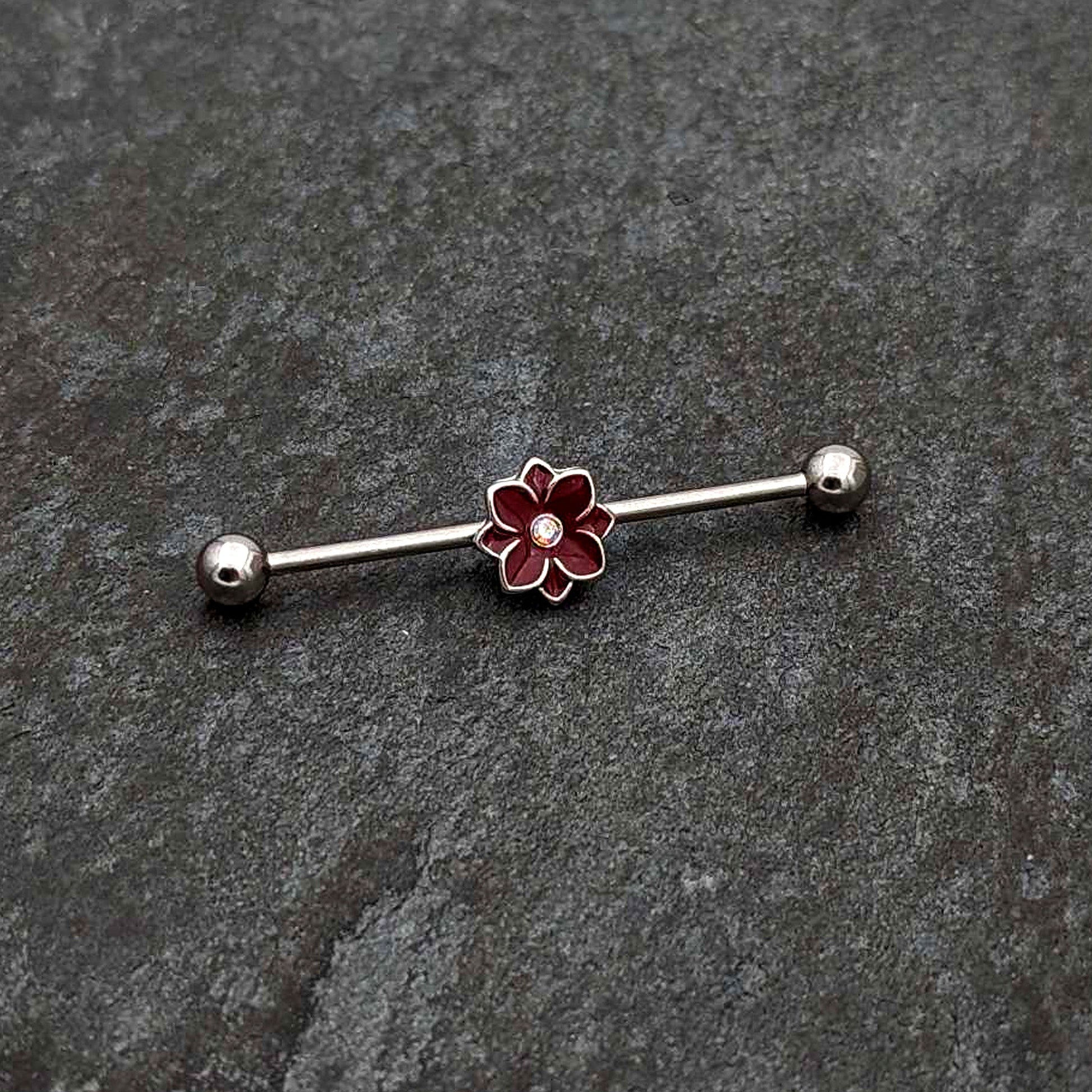 14 Gauge Aurora Gem Poinsettia Flower Festive Industrial Barbell 38mm