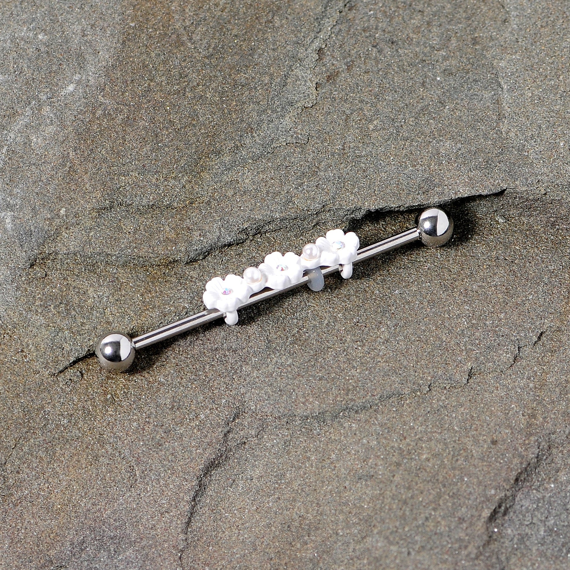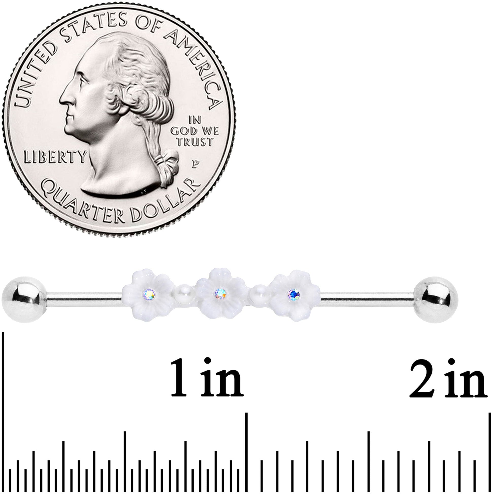 14 Gauge Aurora Gem White Flower Industrial Barbell 38mm