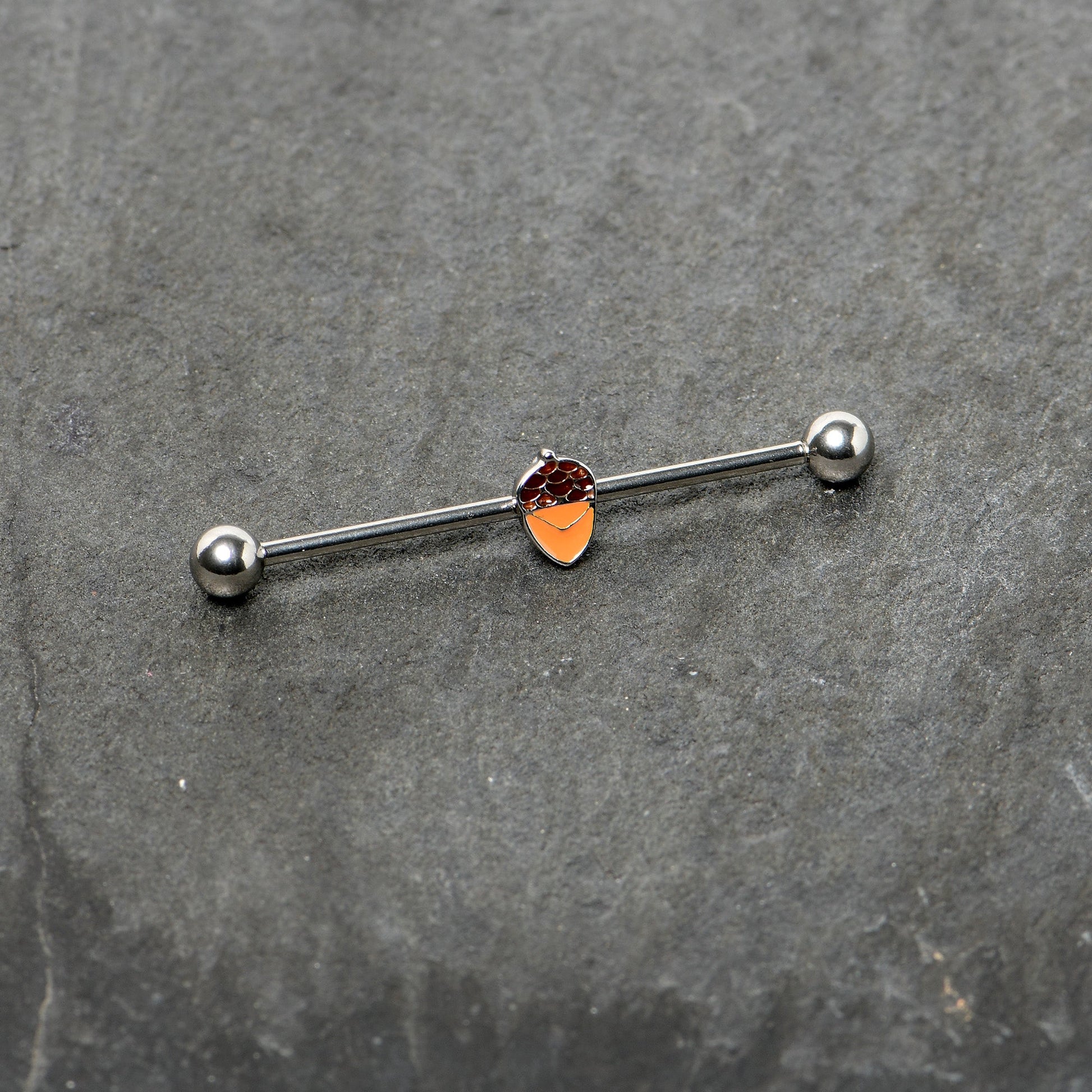 14 Gauge Autumn Acorn Brown Orange Industrial Barbell 38mm