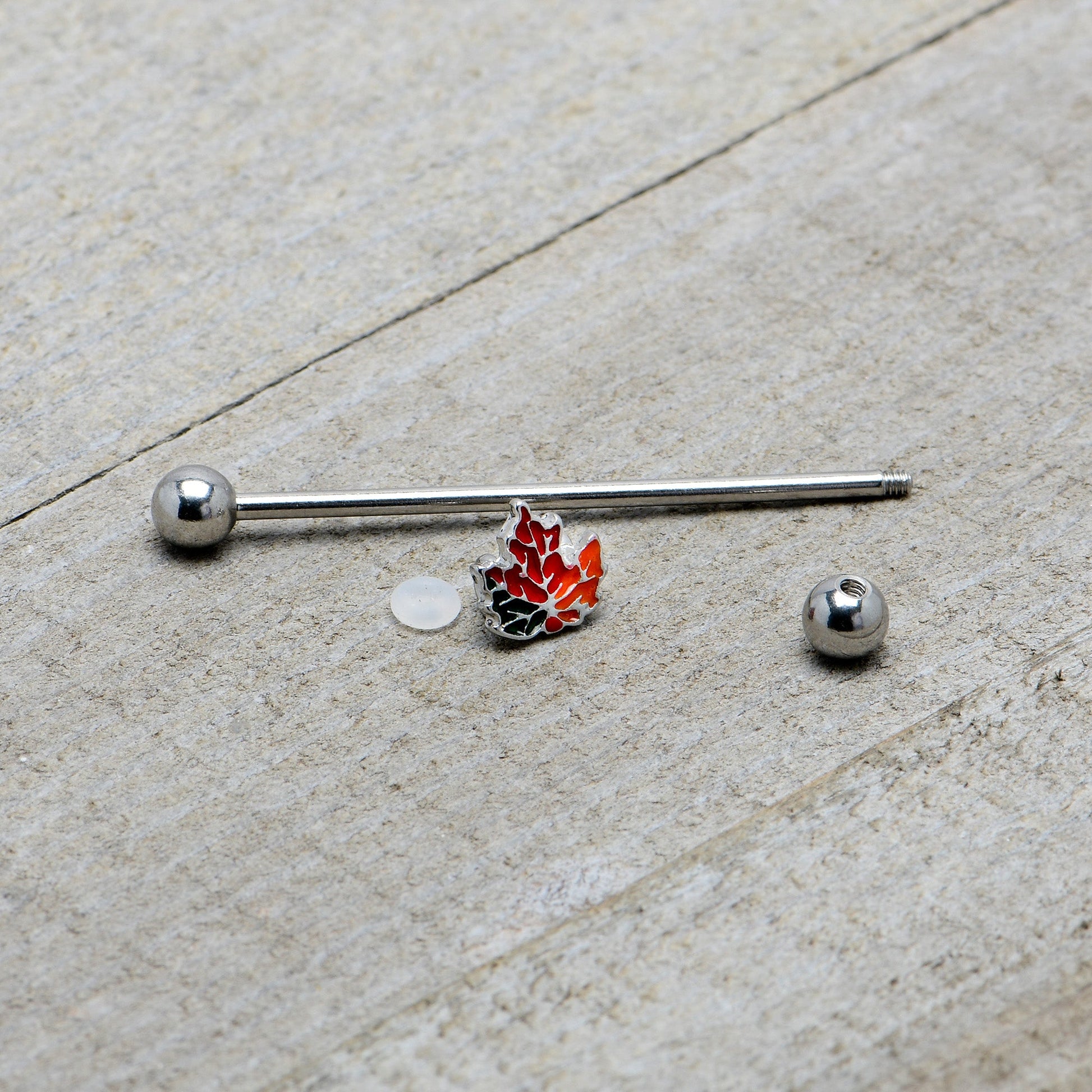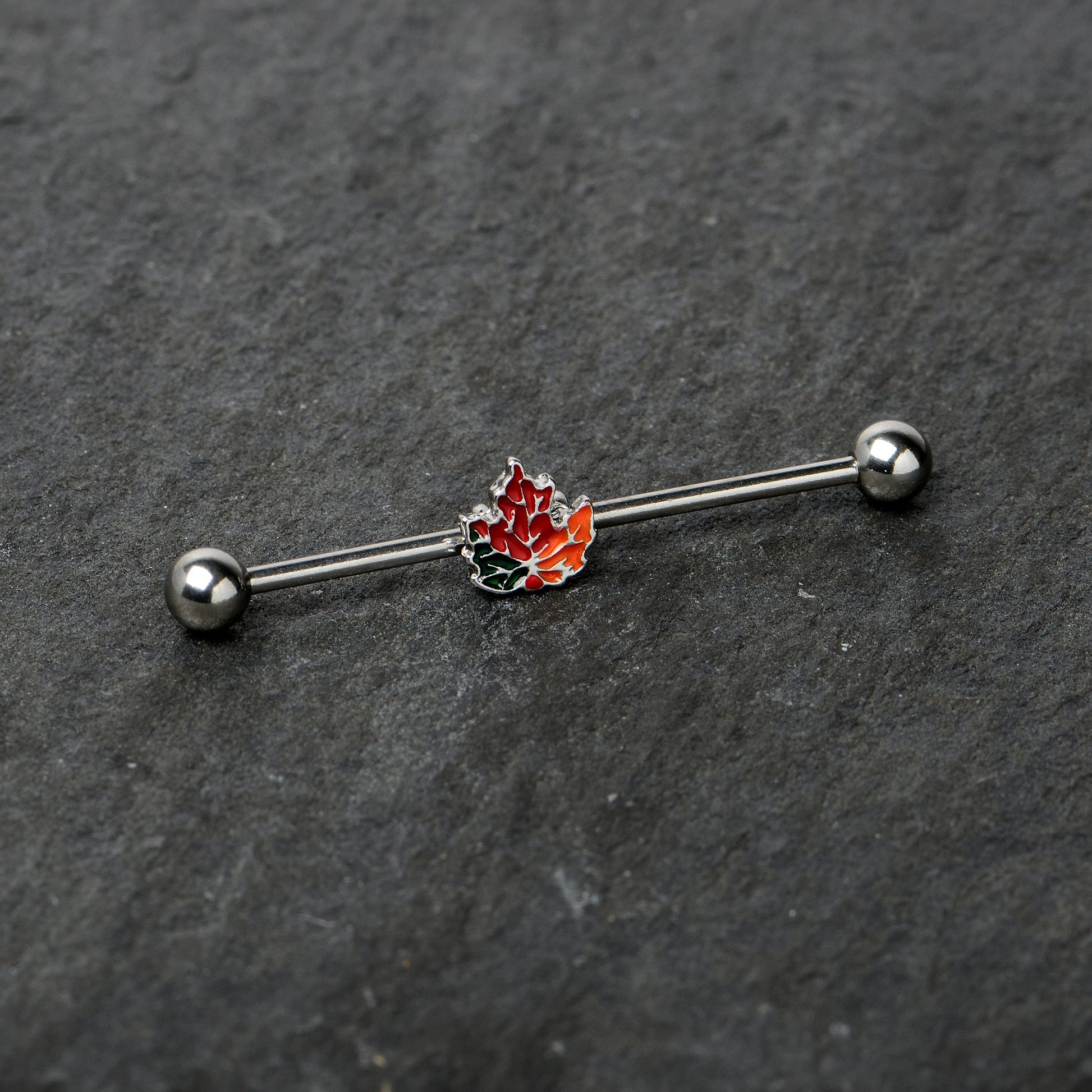 14G Autumn Tricolor Red Maple Leaf Industrial Barbell 38mm