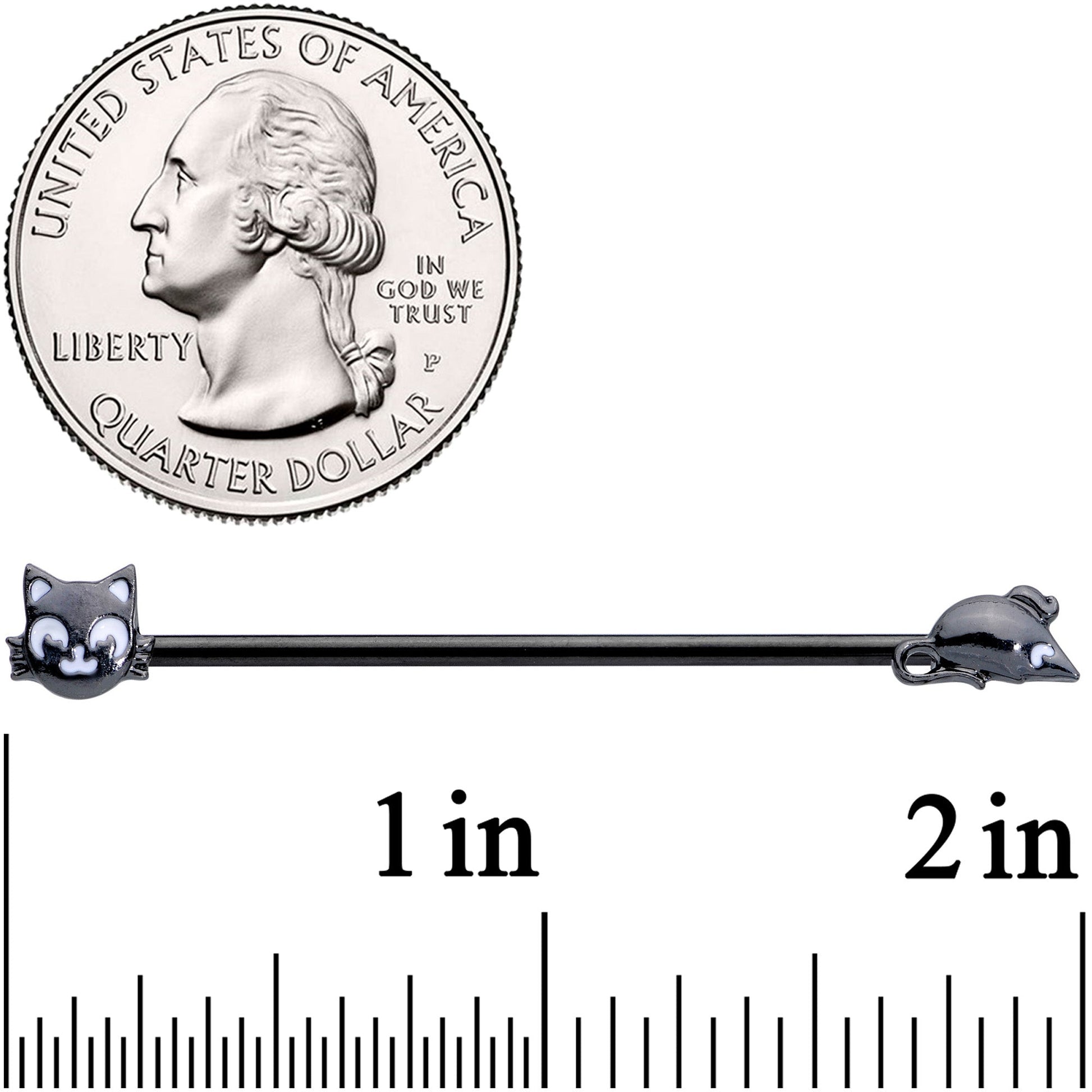 14 Gauge Black Cat Mouse Halloween Industrial Barbell 38mm