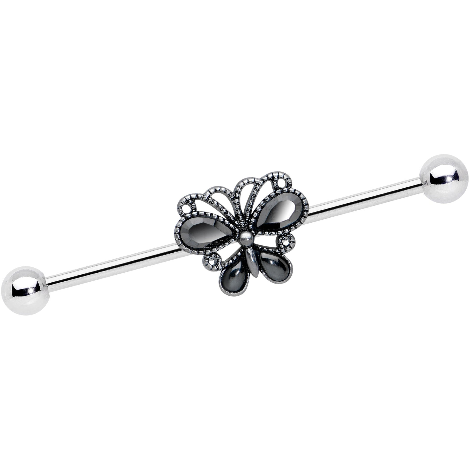 14 Gauge Black Gem Abstract Bow Industrial Barbell 38mm